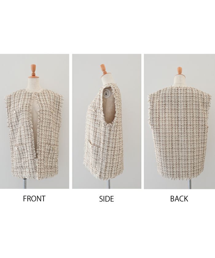 【最終値下げ価格】ツイードフリンジベスト 春 秋 M | アクアガレージ aquagarage