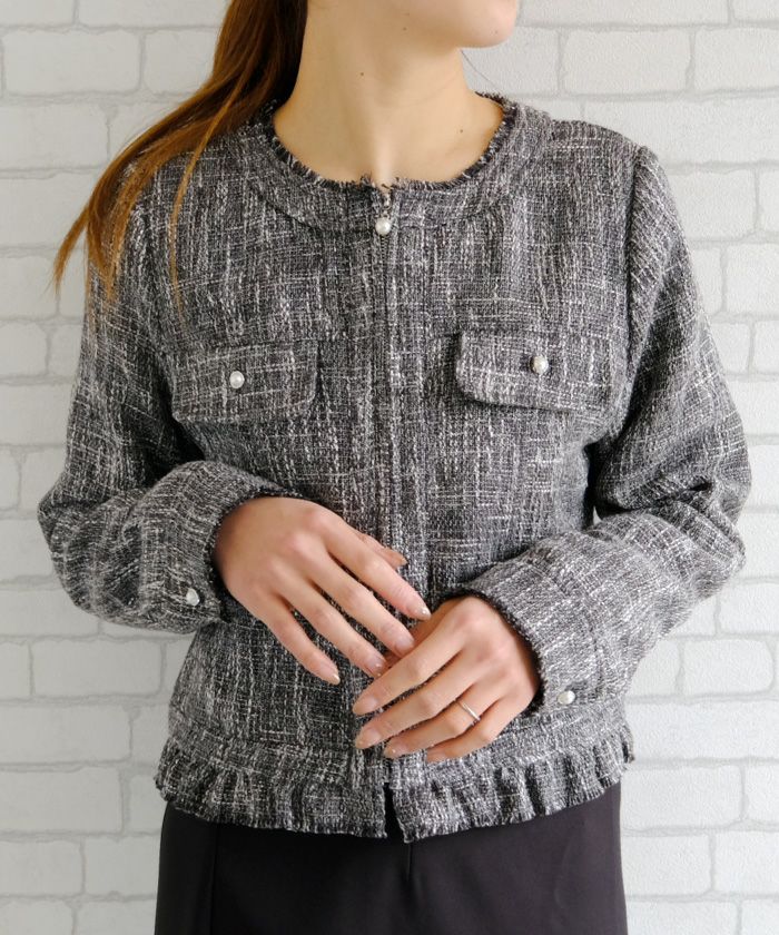送料無料 サマーツイードノーカラーフリルジャケット 春 秋 冬 M | アクアガレージ aquagarage