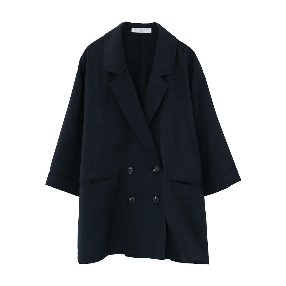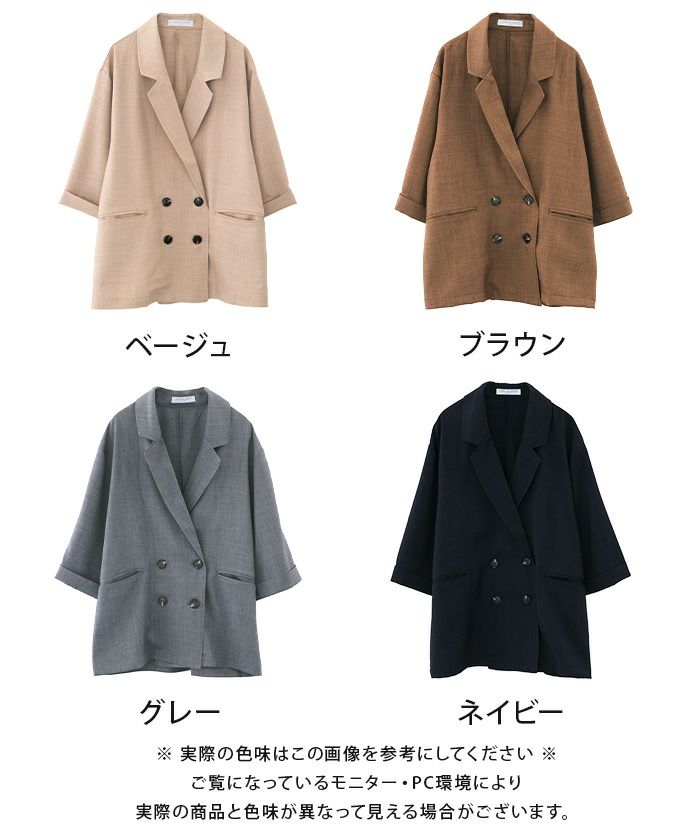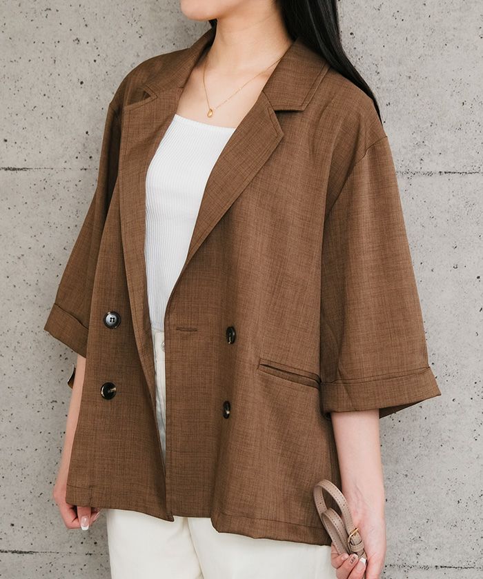 送料無料 リネンライクダブルブレスト半袖テーラードジャケット 春 夏 秋 M |アクアガレージ aquagarage