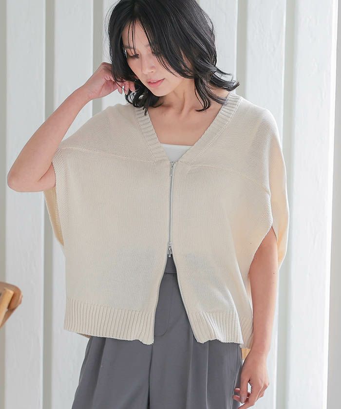 送料無料 ダブルジップコクーンニットベスト 春 夏 秋 アクアガレージ aquagarage
