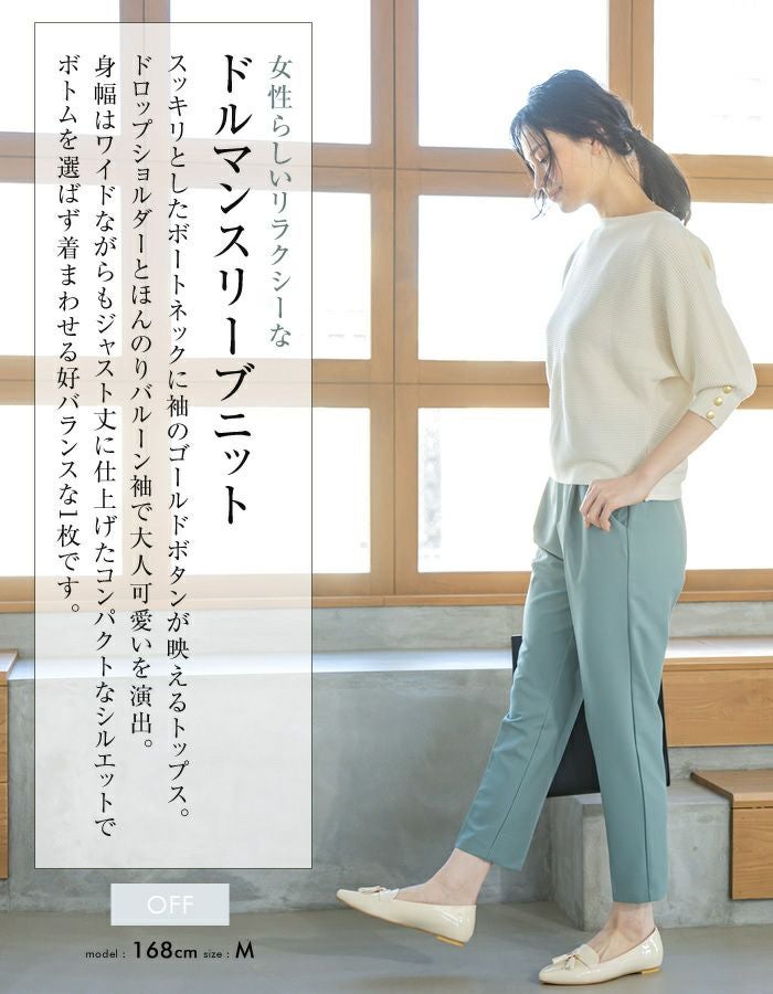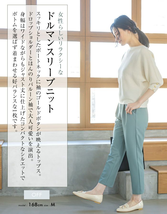 • 女性らしいリラクシーなドルマンスリーブニット。