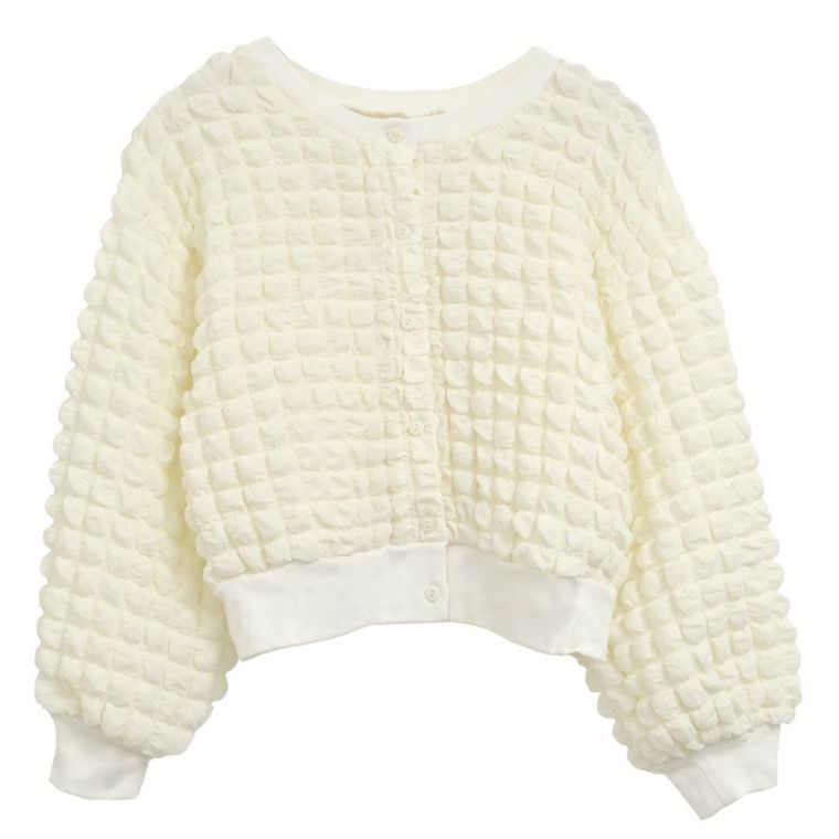 ポップコーンのようなポコポコとした素材が可愛いカーディガン。 コンパクトなショート丈だから、すっきりとしたスタイリングに。 ふんわりボリュームのある袖で、大人かわいく着こなせます。 個性的ながらも、どんなスタイルにも合わせやすいアイテムです。