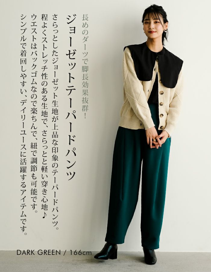 • 長めのダーツで脚長効果抜群! ジョーゼットテーパードパンツ