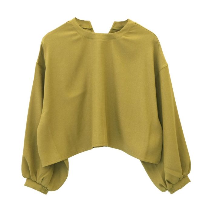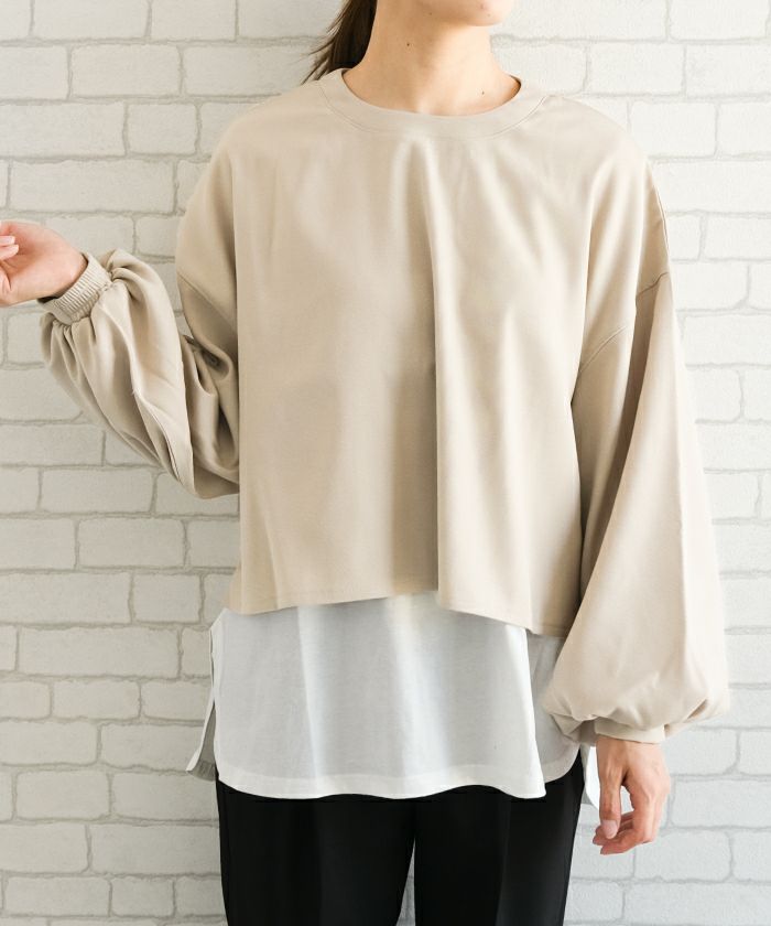 • 前後2wayで着られる!ツイルキーネックパフスリーブトップス
