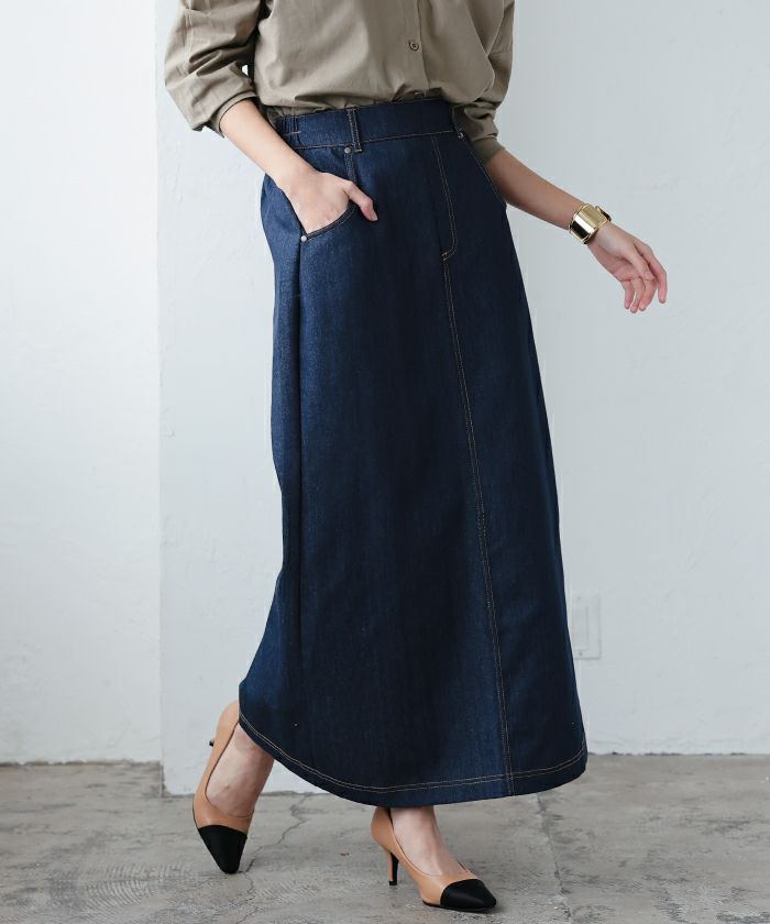 送料無料 【セットアップ可】デニムロングタイトスカート レディース 春 夏 秋 M | ≪ゆうメール便配送30・代引不可≫アクアガレージ aquagarage