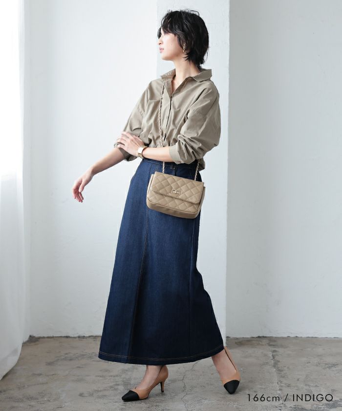 • 定番のバックスリット入りのデニム素材のタイトスカート。