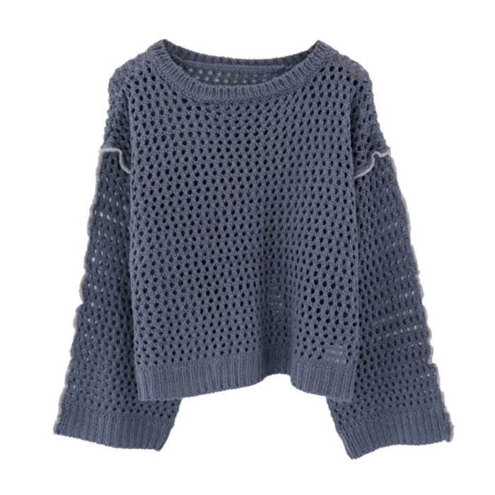 • ざっくりした編み目がポイントのメッシュメローニットトップス