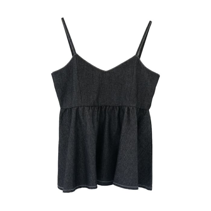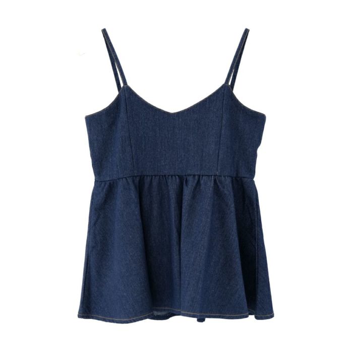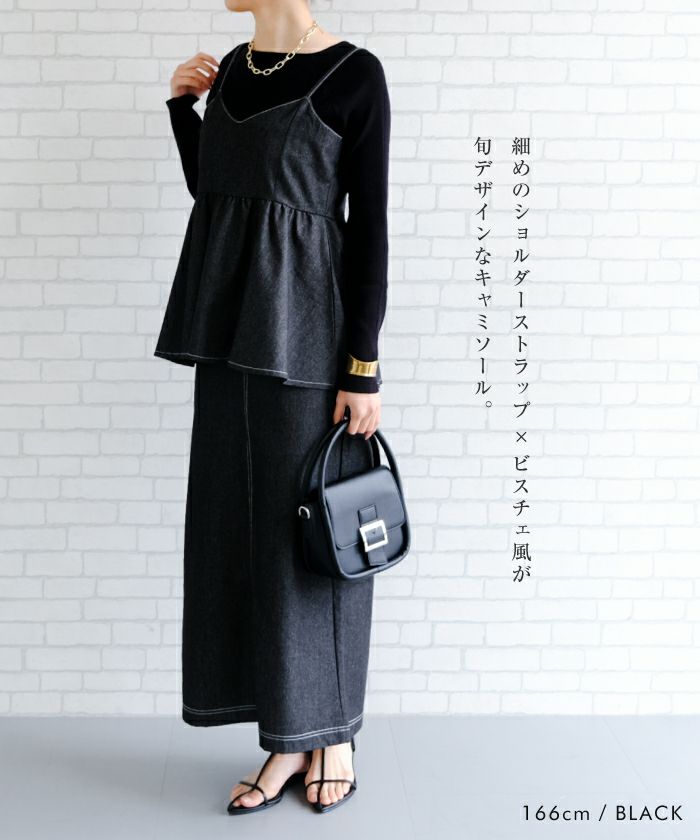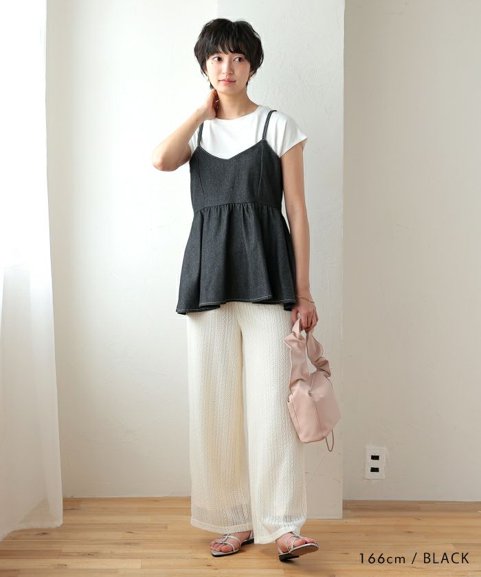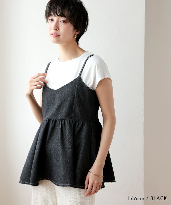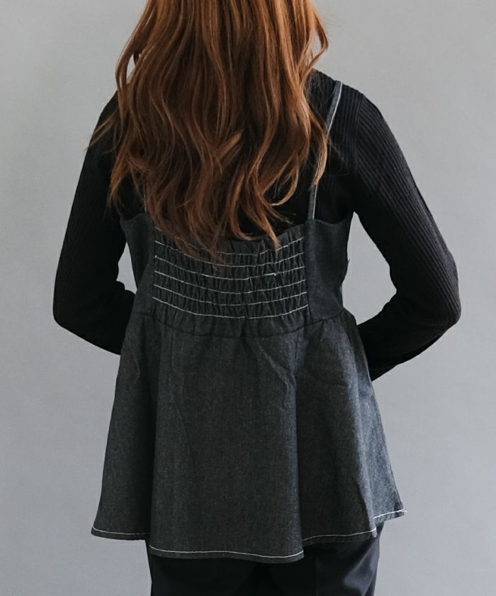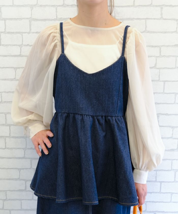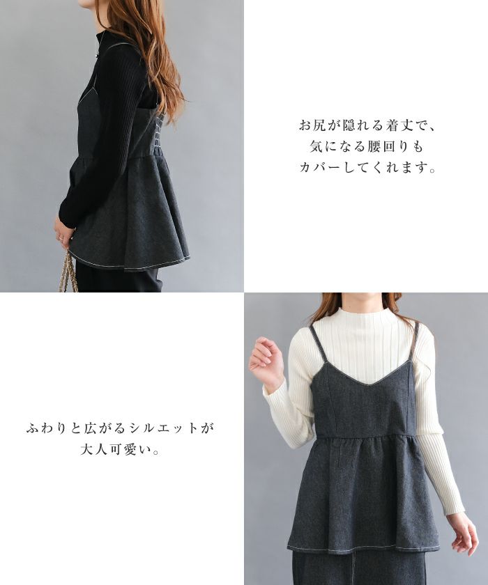 • トレンド感のあるデニム生地で完成させたデニムペプラムビスチェ