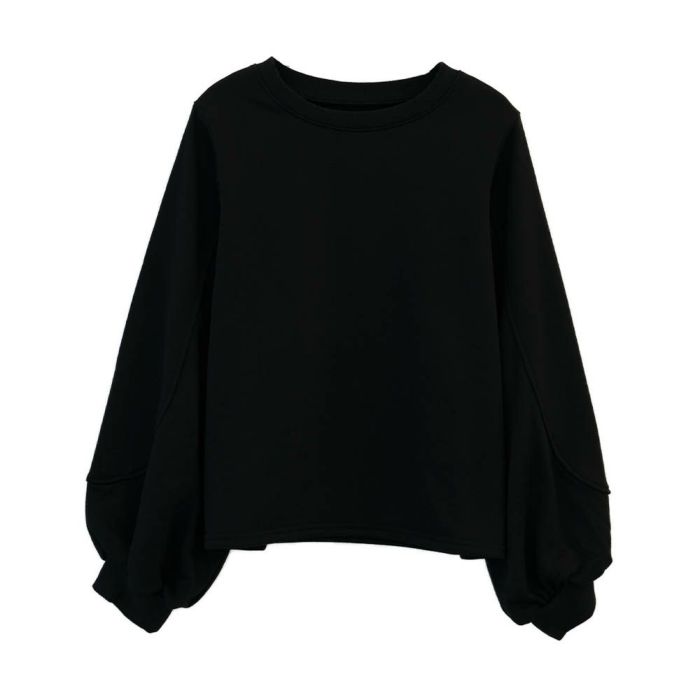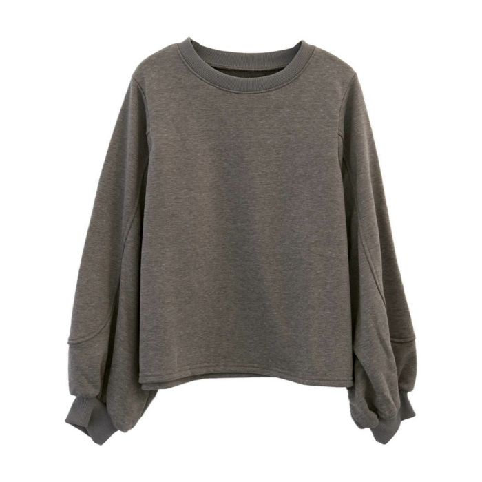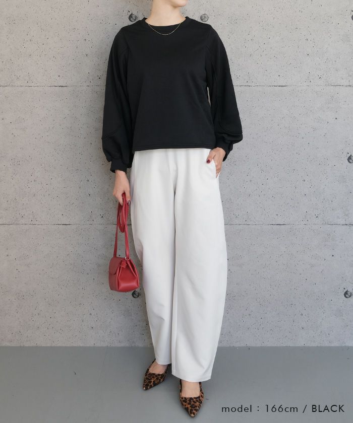 カジュアルなアイテムですが、程よくあいた首元やボリューム感のある袖が女性らしい印象をプラス。
