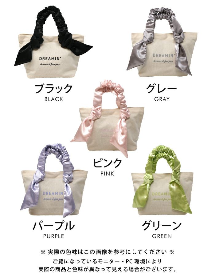 サテン素材のギャザーハンドルがポイントのミニトートバッグ。 外側に1つ、内側に2つのポケット付きで実用性もバッチリです◎ 底板入りなので、荷物をたくさん入れても安心です。
