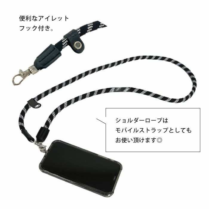 ショルダー紐にマウンテンロープを使用したショルダーバッグ。