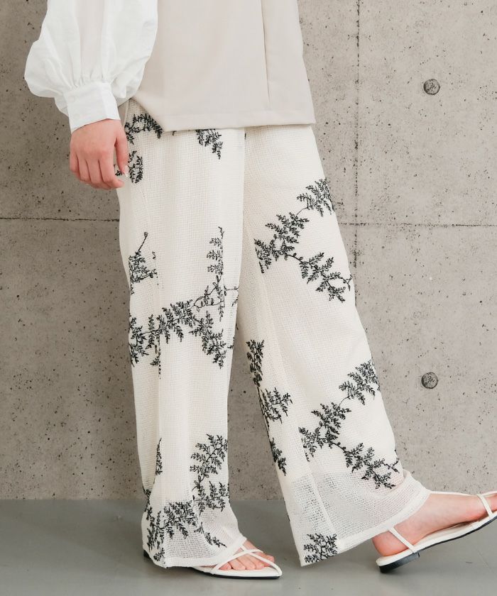 • 花柄が目を引くメッシュ素材のワイドパンツ