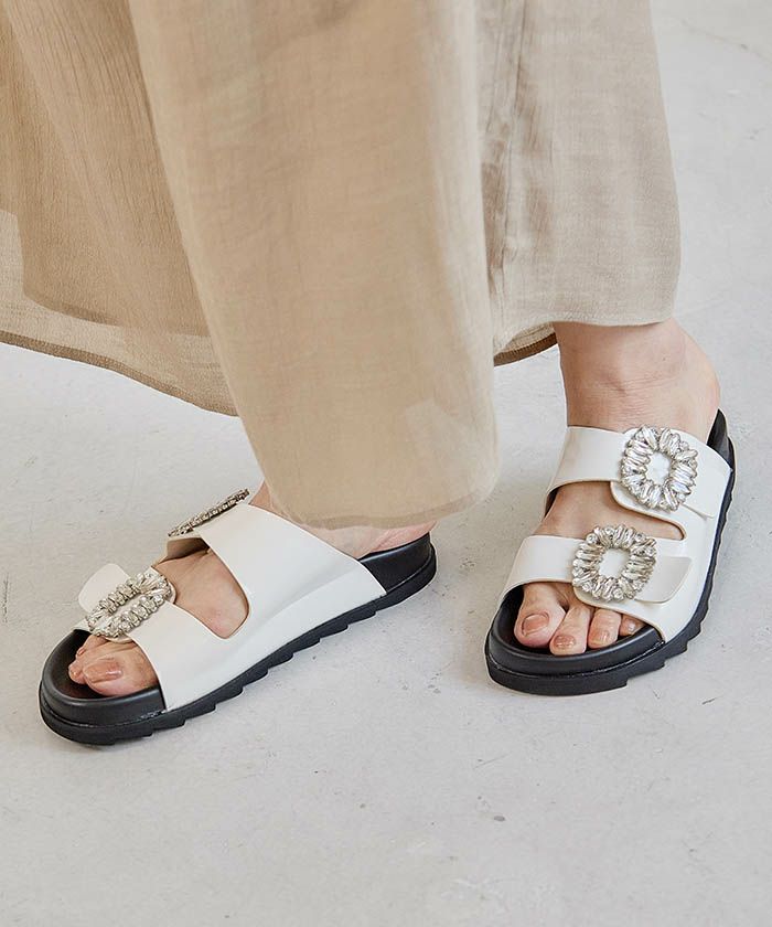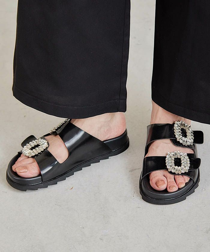 送料無料 ビジューダブルベルトサンダル レディース 春 夏 ミュール | アクアガレージ aquagarage