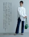 程よいフレアで脚を長く綺麗に見せてくれるデニムパンツ。 ウエスト部分は、後ろがゴムになっているので穿きやすく楽ちん。 伸縮性のある生地で、ストレスフリーな着心地を叶えます。