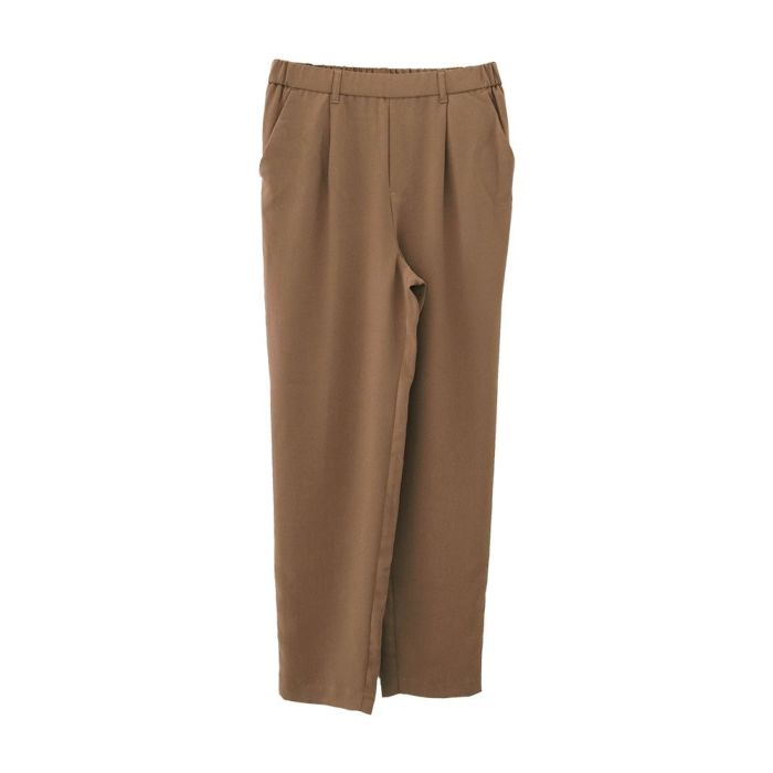 テーパードシルエットが脚のラインを美しく見せ、カジュアルからオフィススタイルまで幅広く活躍するアイテムです。
