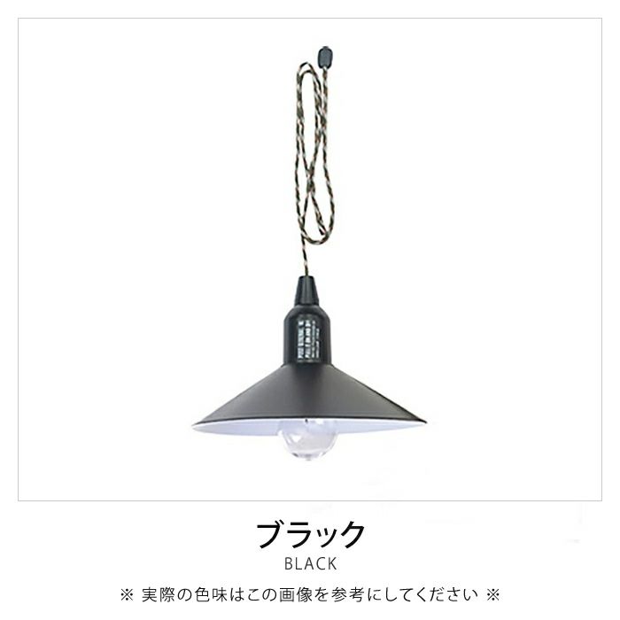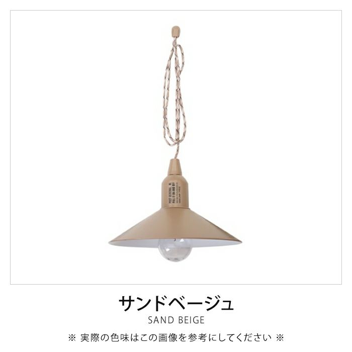 コードを引っ張りスイッチをON/OFF。光が優しく広がるシェード付きのTYPE2。 ソケットとシェード、電球が分割式で使わないときはコンパクトに収納でき、持ち運びにもかさばりません。ポリカーボネート製のLED電球は落としても割れない安全な仕様です。