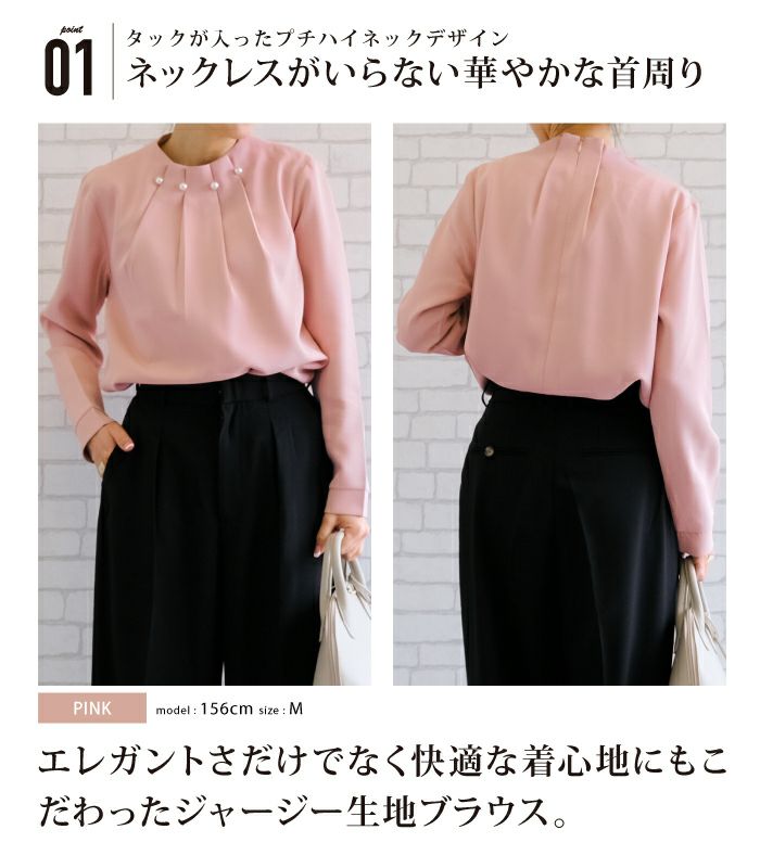 送料無料 パールネックブラウス レディース 春 秋 S M L LL 3L 長袖 ≪ゆうメール便配送30・代引不可≫ | アクアガレージ aquagarage