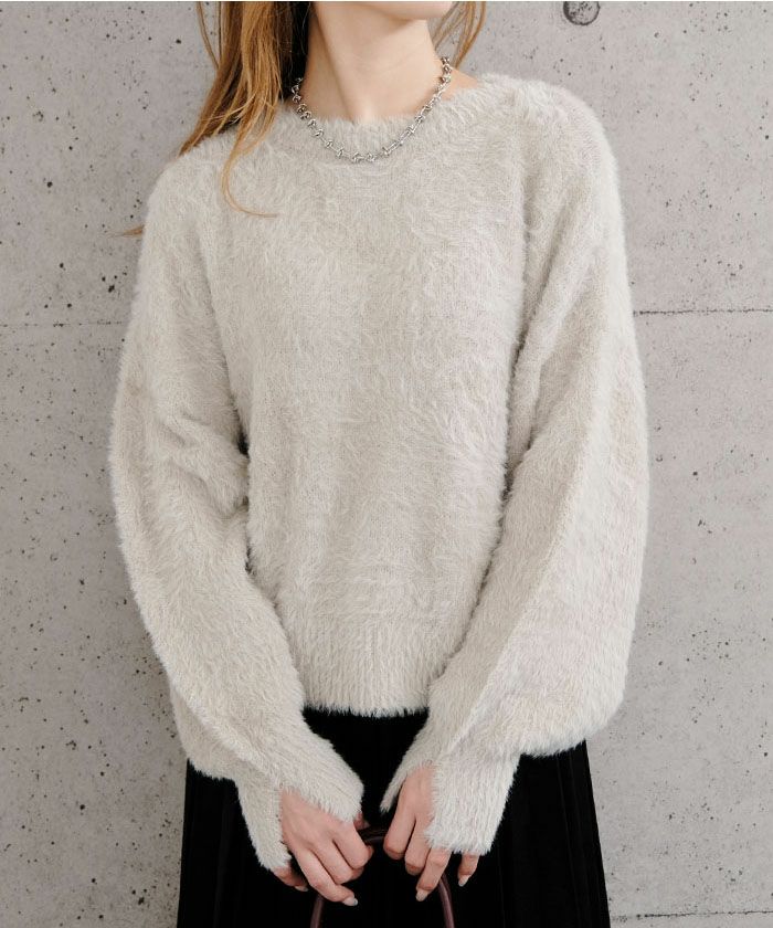 ネップ入りシャギーヤーンニットトップス M レディース 春 秋 冬 | アクアガレージ aquagarage