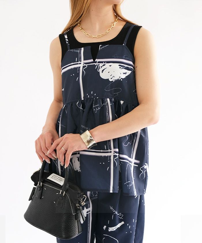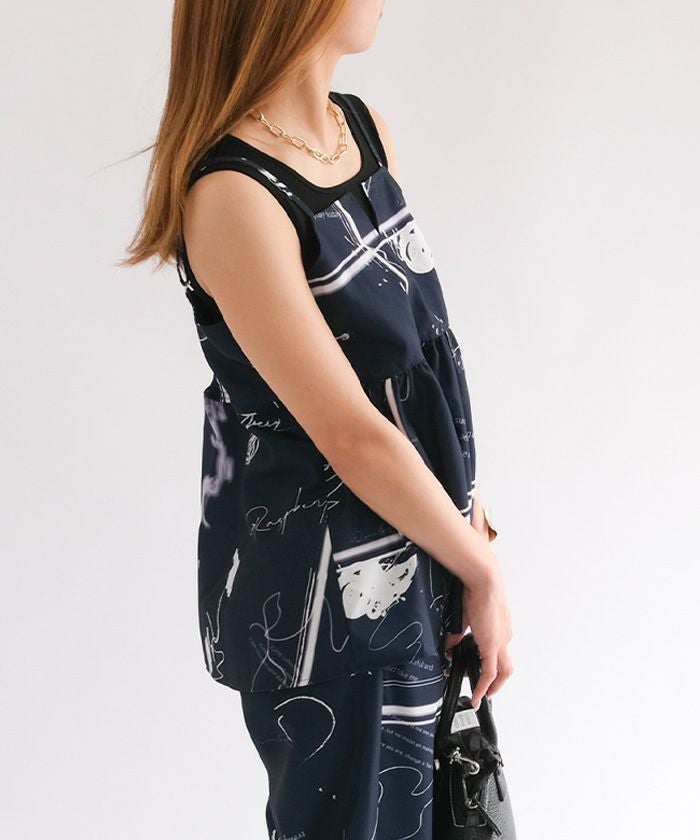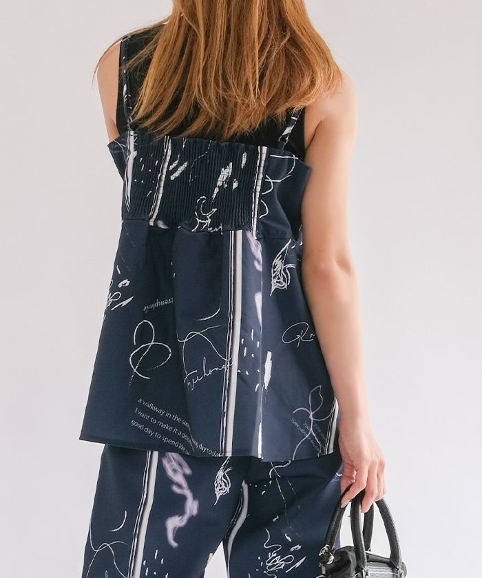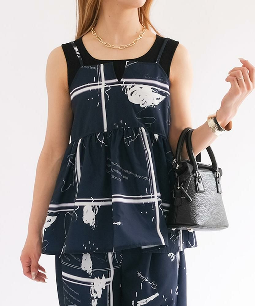 送料無料 【セットアップ可】英字柄ペプラムキャミソール レディース 春 夏 秋 M ≪ゆうメール便配送20・代引不可≫|アクアガレージ aquagarage