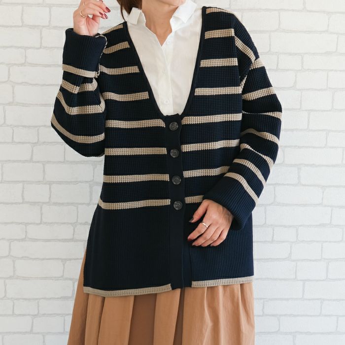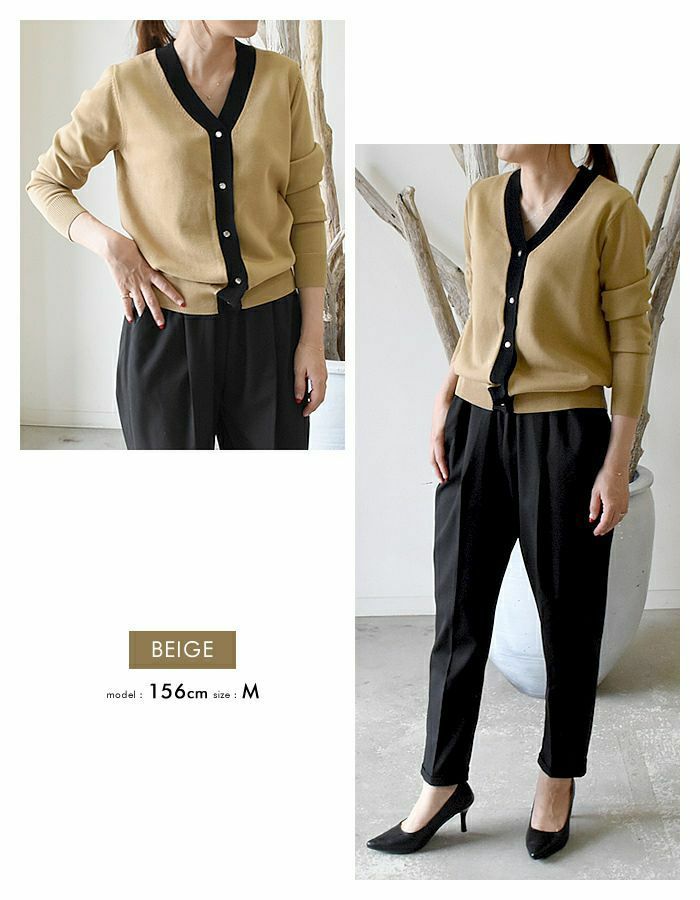 送料無料 バイカラーカーディガン レディース 春 秋 冬 長袖 M L | アクアガレージ aquagarage