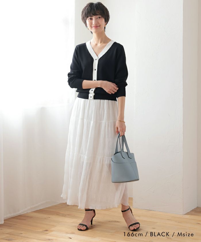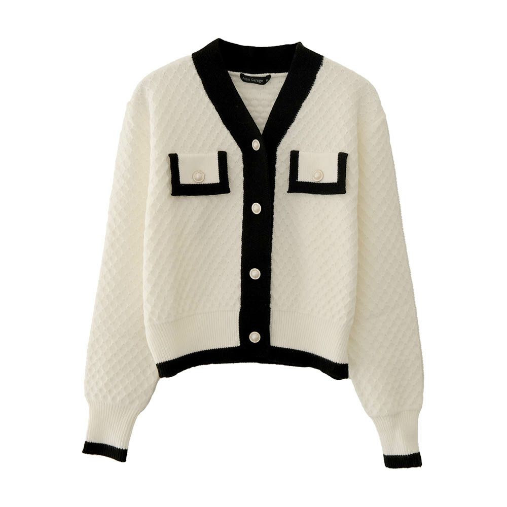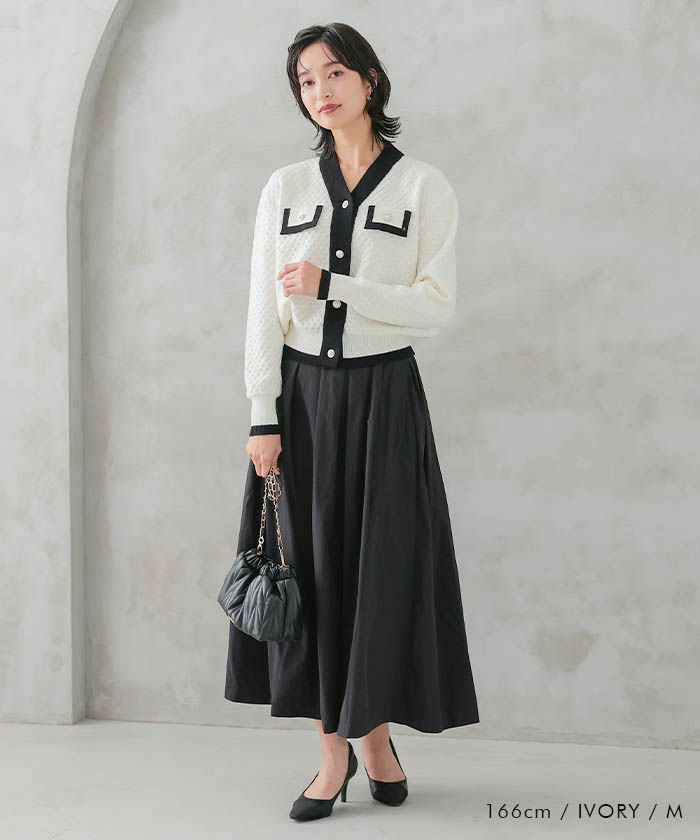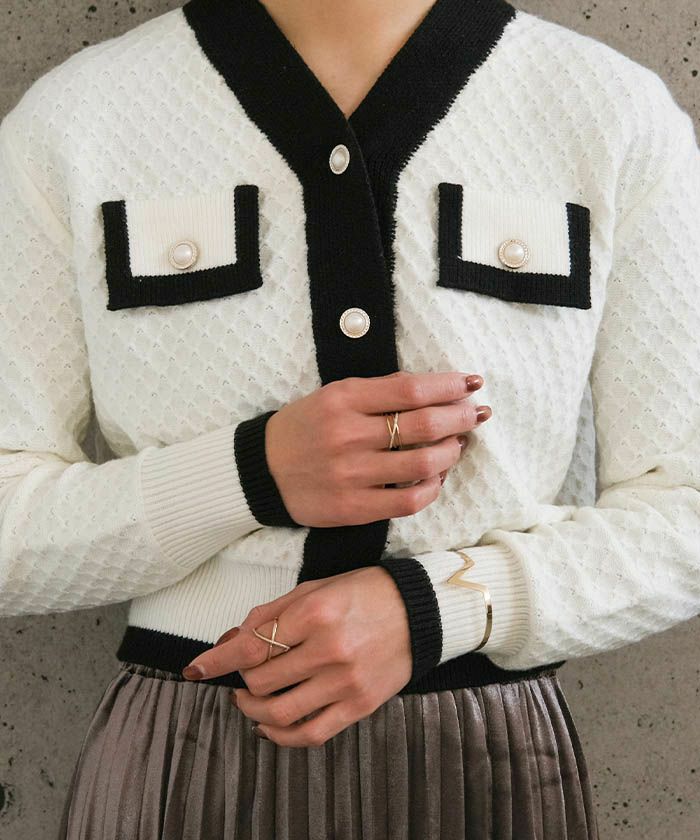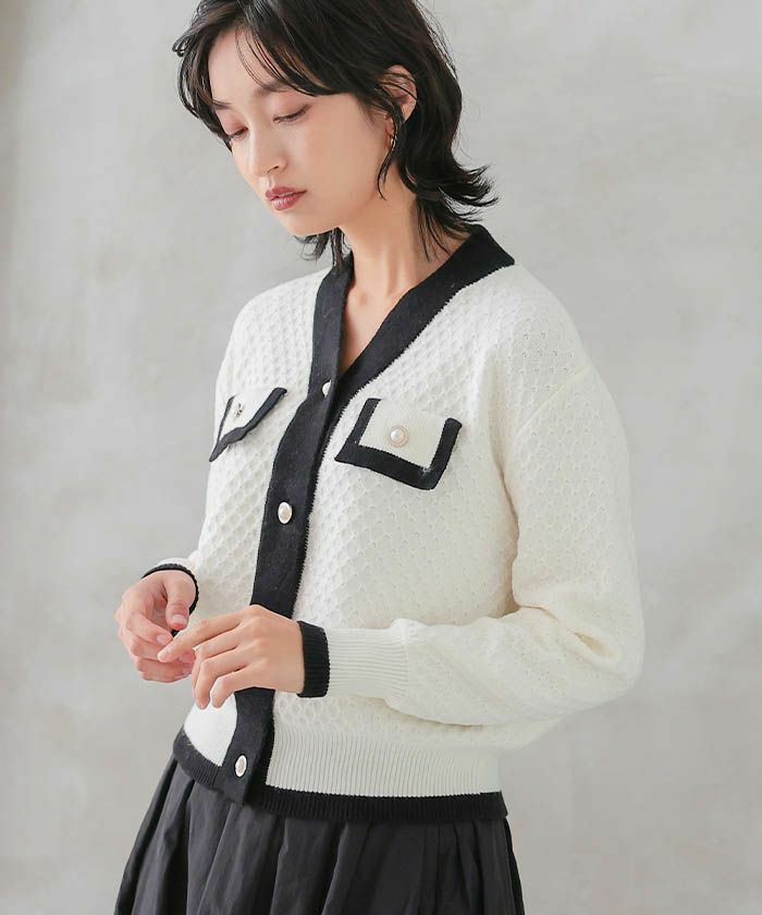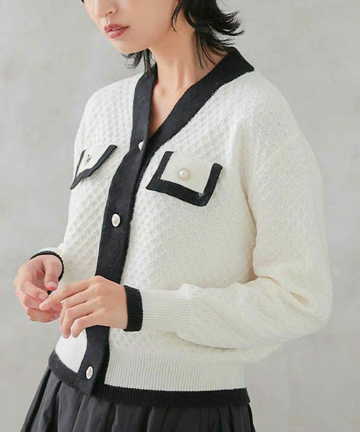 送料無料 バイカラーコンパクトカーディガン 春 秋 冬 長袖 M L | アクアガレージ aquagarage