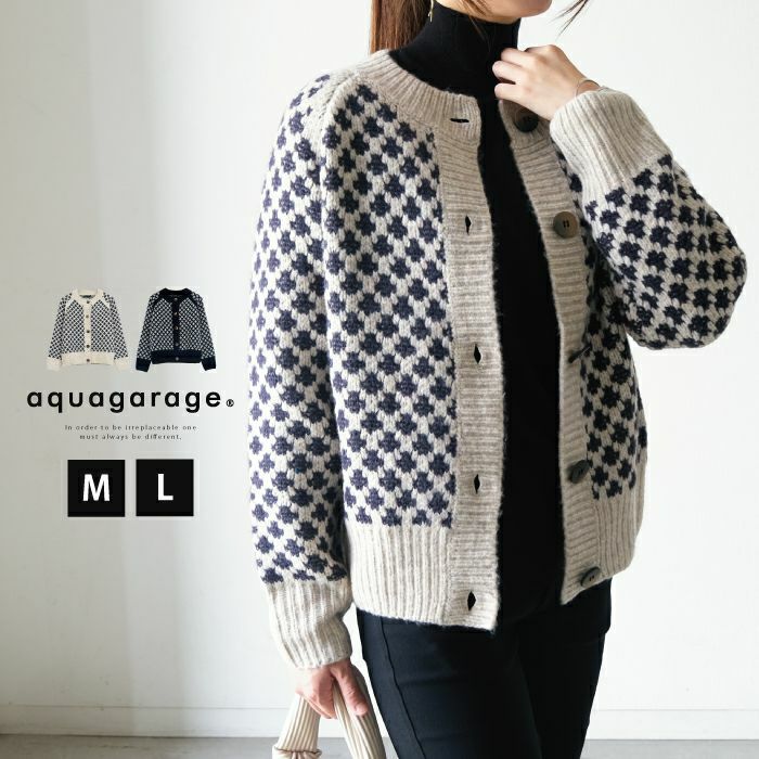 クルーネックニットカーディガン レディース 秋 冬 M L 長袖 | アクアガレージ aquagarage