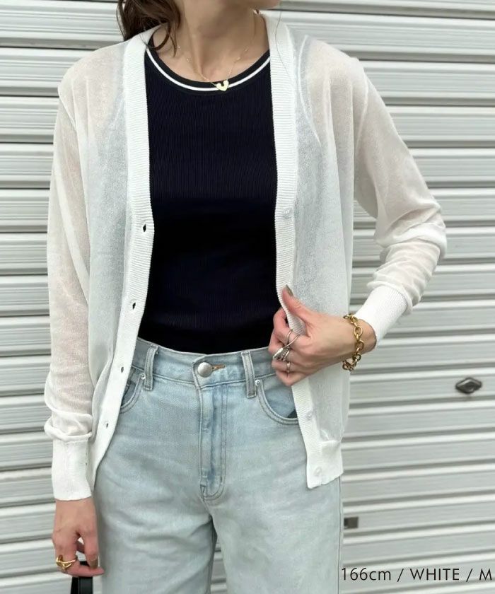 送料無料 パールボタン付きシアーカーディガン 春 夏 秋 M≪ゆうメール便配送20・代引不可≫ | アクアガレージ aquagarage