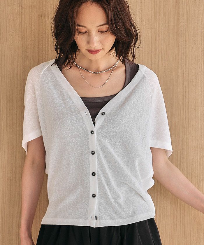 送料無料 Vネックシアーカーディガン レディース 春 夏 M 半袖 ≪ゆうメール便配送20・代引不可≫ | アクアガレージ aquagarage