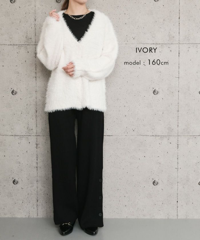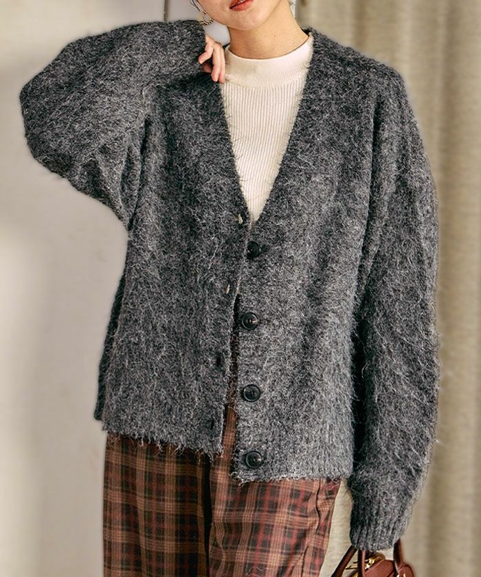 シャギーVネックカーディガン 長袖 レディース | アクアガレージ aquagarage