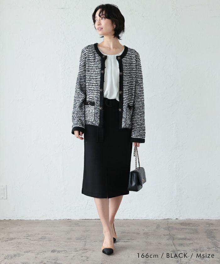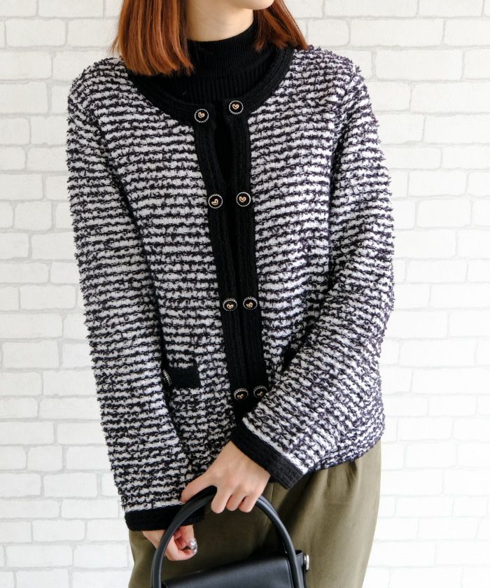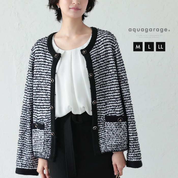 送料無料 ツイード風ニットジャケット 春 秋 冬 M | アクアガレージ aquagarage