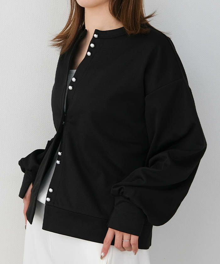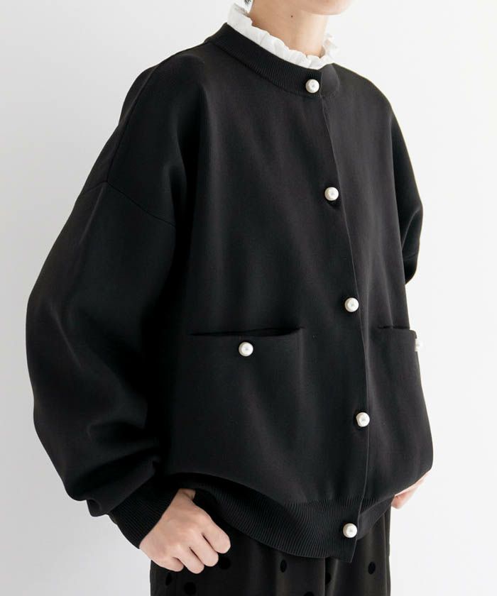 スポンジニットパールボタンカーディガン 春 秋 冬 M レディース | | アクアガレージ aquagarage
