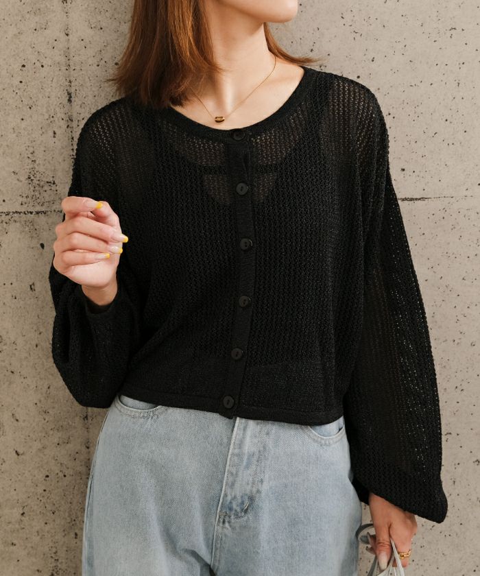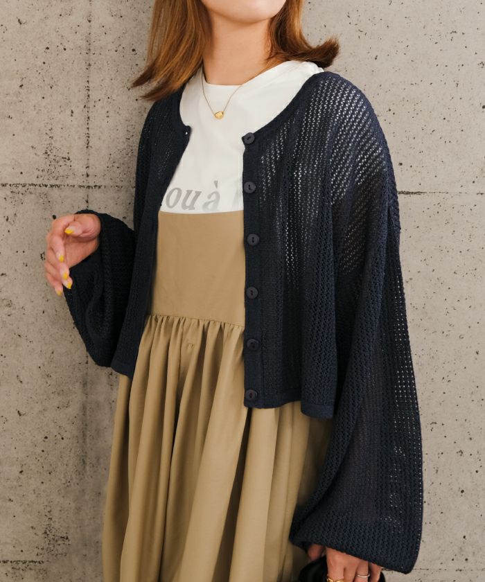送料無料 2wayメッシュ編みショート丈カーディガン 春 夏 秋 M レディース ≪ゆうメール便配送10・代引不可≫ | | アクアガレージ aquagarage