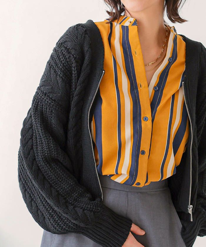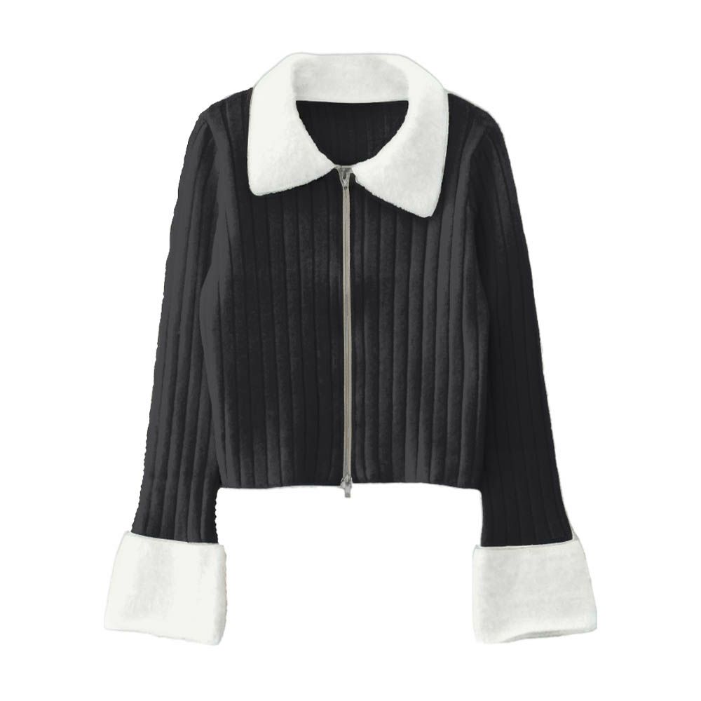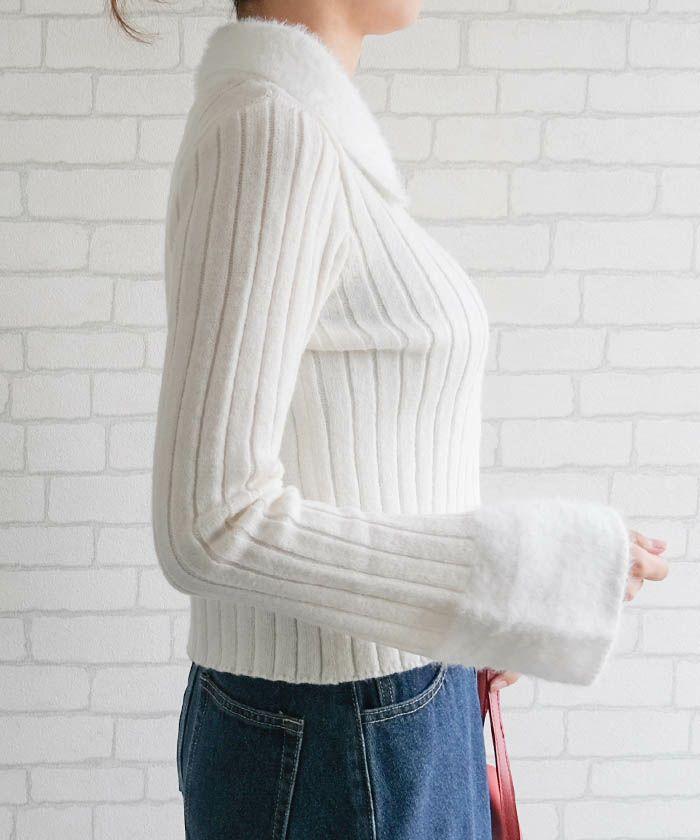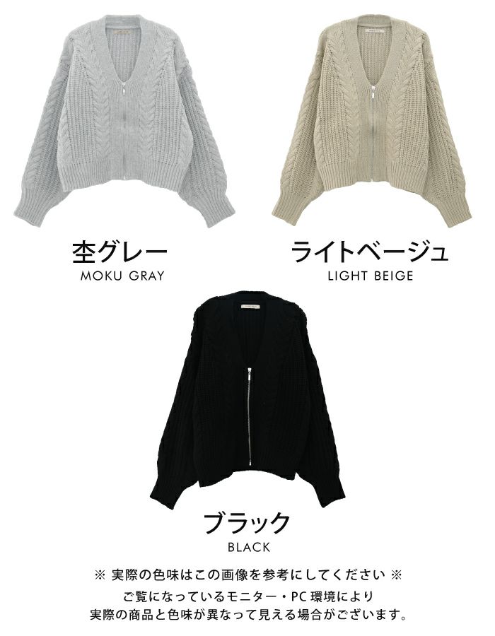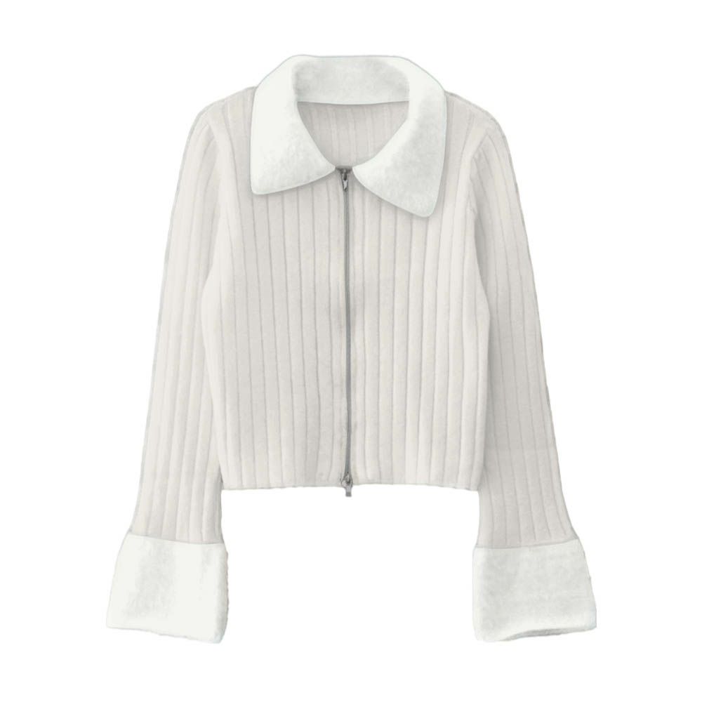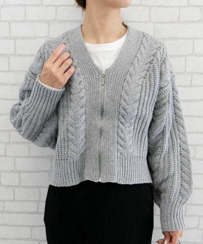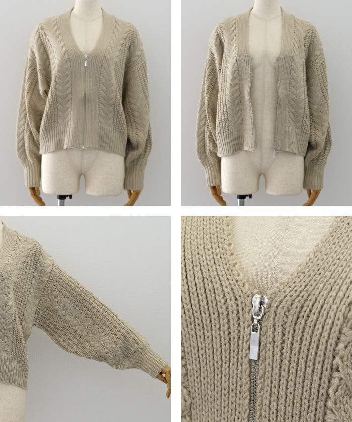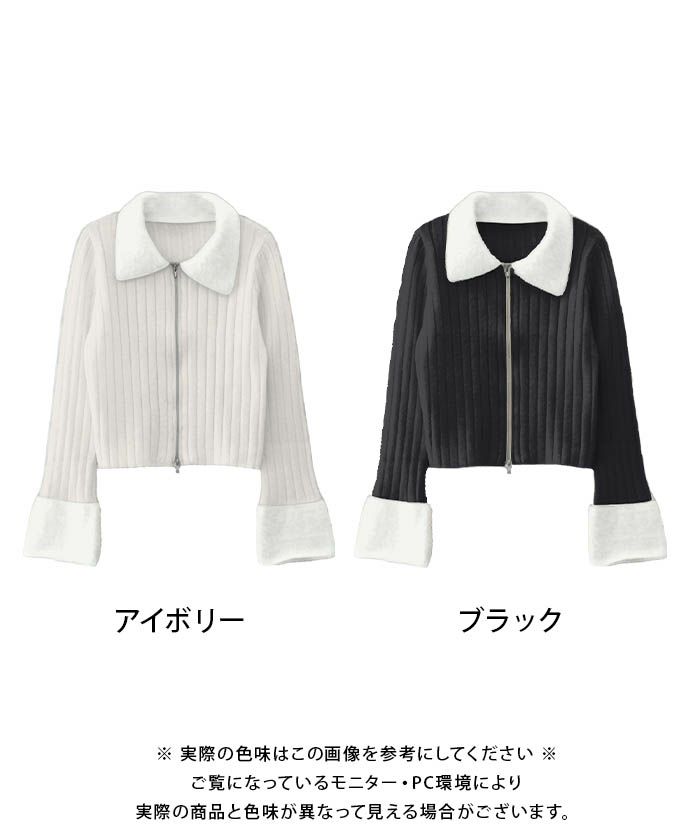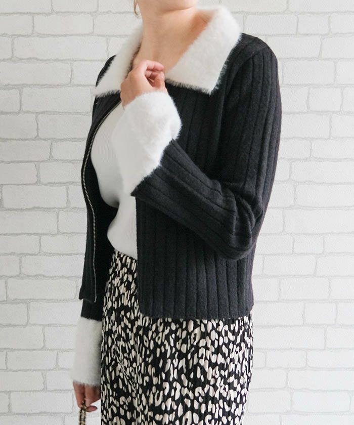 フェザーヤーン襟付きダブルジップリブニットカーディガン 春 秋 冬 | アクアガレージ aquagarage