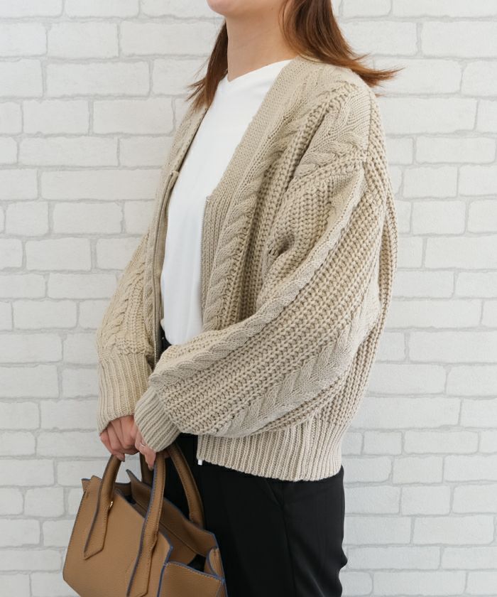 送料無料 片畦ケーブルショートカーディガント 春 秋 冬 M レディース | アクアガレージ aquagarage