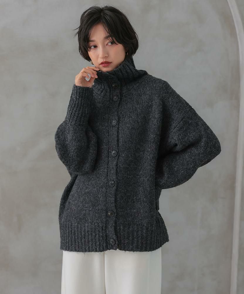送料無料 スタンドカラーニットカーディガン 春 秋 冬 | アクアガレージ aquagarage