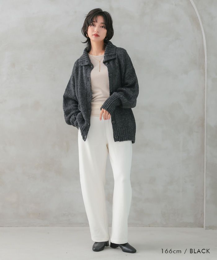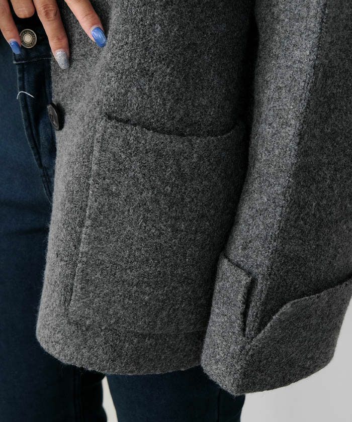送料無料 ワイドスリーブノーカラーニットジャケット 秋 冬 M レディース | アクアガレージ aquagarage