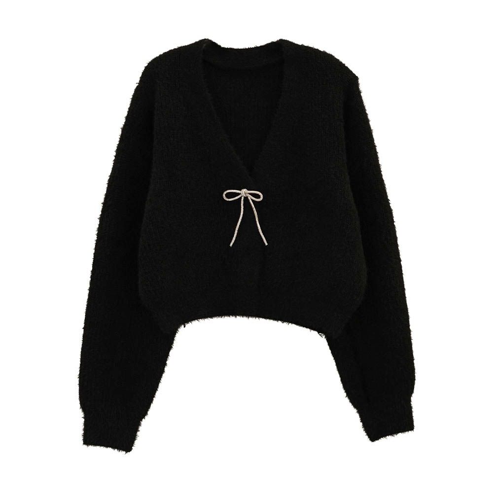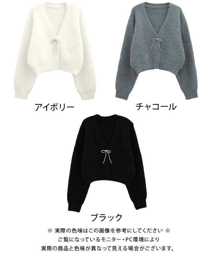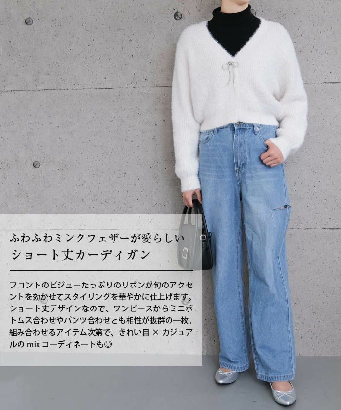【最終値下げ価格】ミンクフェザービジューリボンカーディガン 春 秋 冬 | アクアガレージ aquagarage