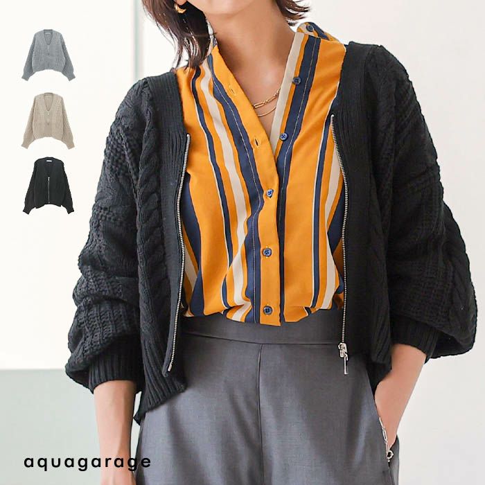 • 送料無料 片畦ケーブルショートカーディガント 春 秋 冬 M レディース | アクアガレージ aquagarage