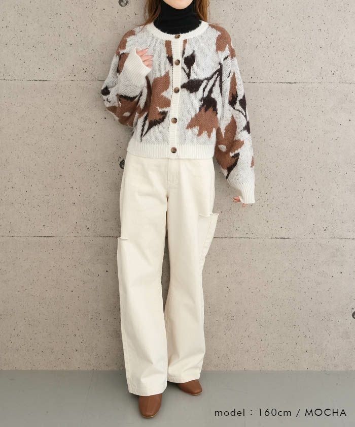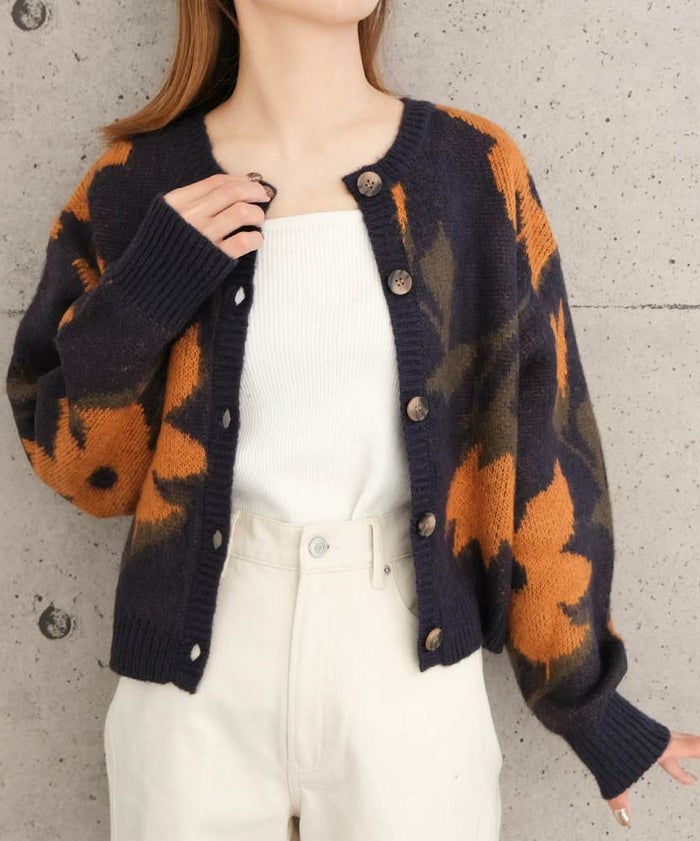 • 1枚で完成する旬スタイル!前後2wayフラワー柄ショートカーディガン