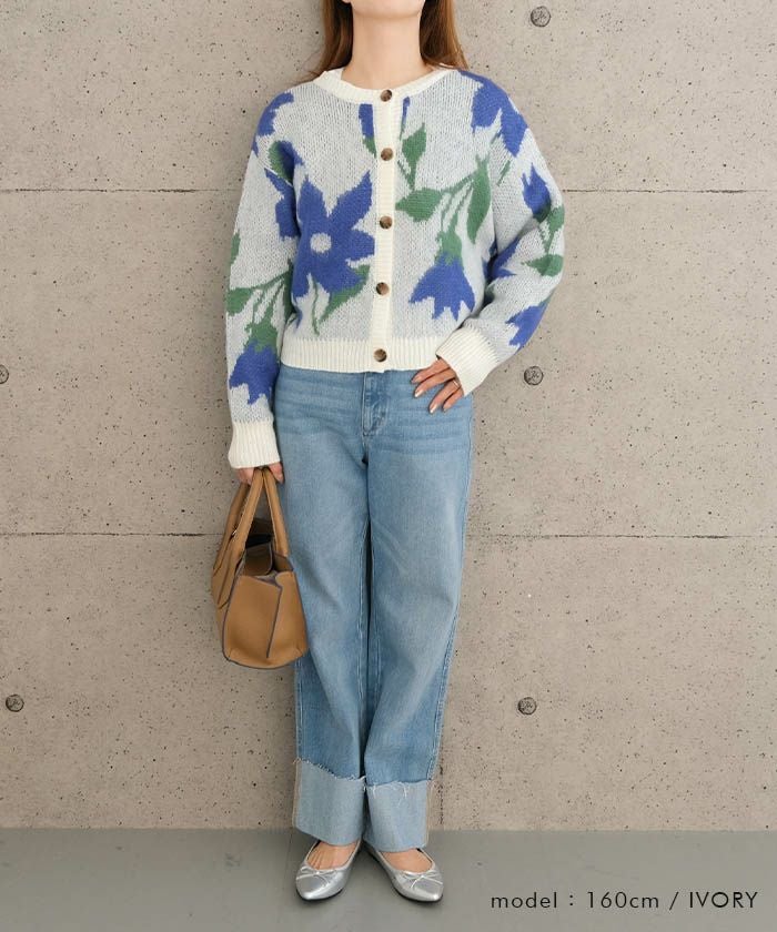 送料無料 前後2wayフラワー柄ショートカーディガン 秋 冬 | アクアガレージ aquagarage