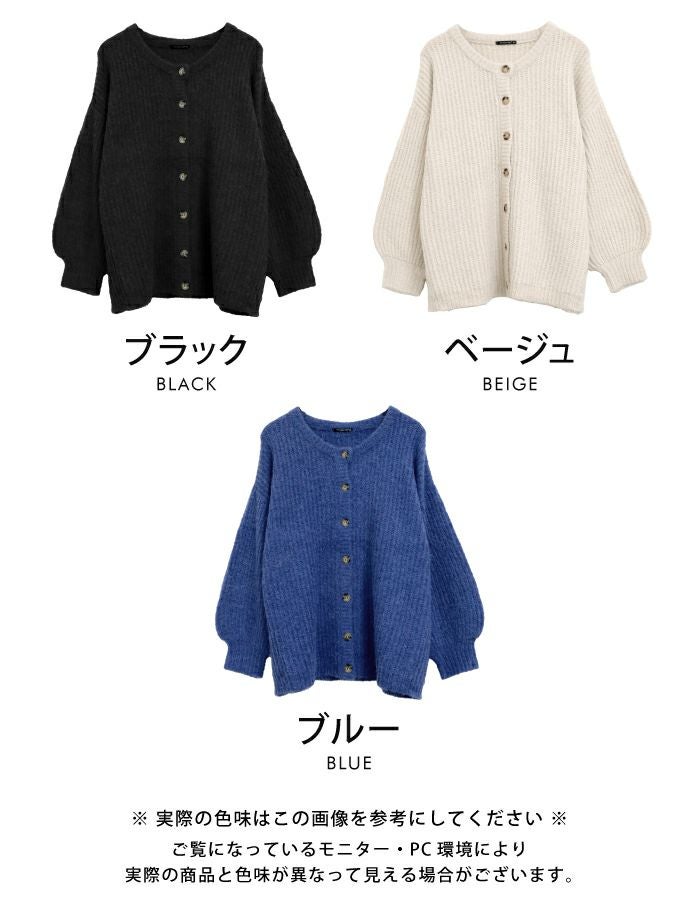 【最終値下げ価格】ボリュームスリーブニットカーディガン レディース 秋 冬 長袖 | アクアガレージ aquagarage