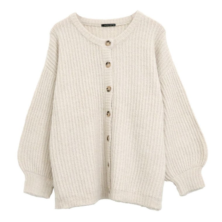 • 緩く柔らかなシルエットがリラックス感を演出!ボリュームスリーブニットカーディガン。