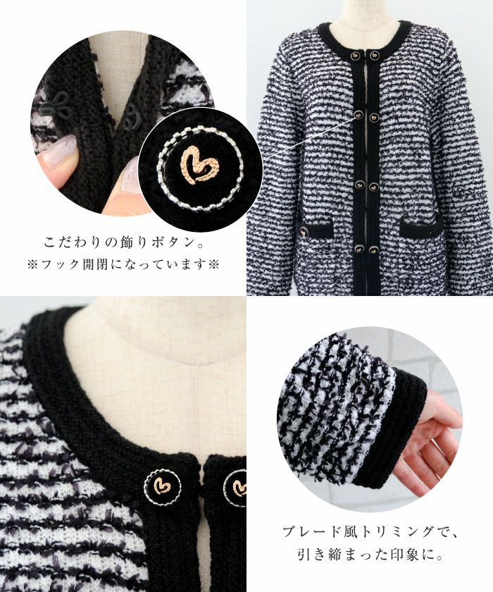 • ツイード風ジャケットが叶う華やかなニットジャケット