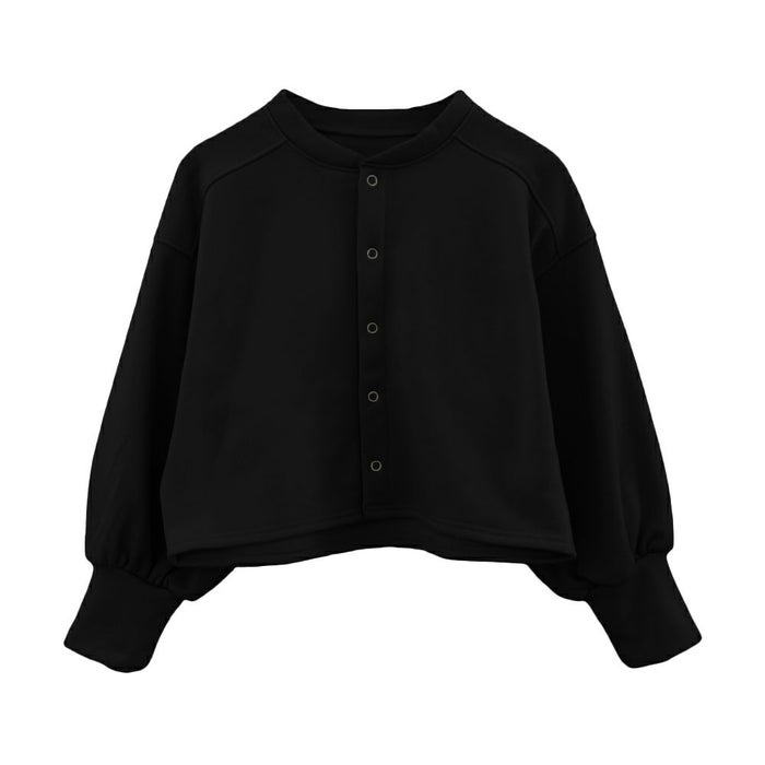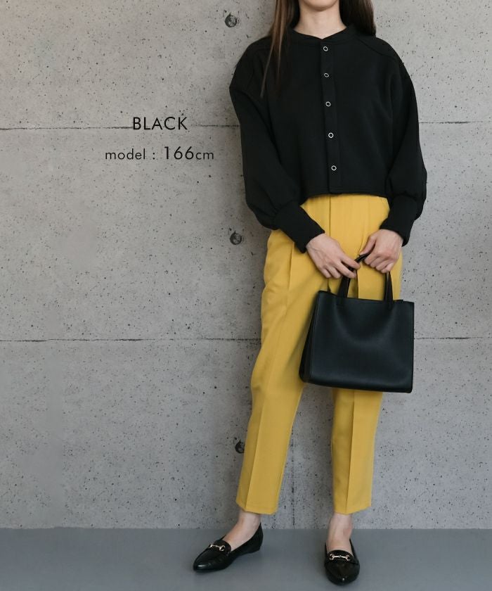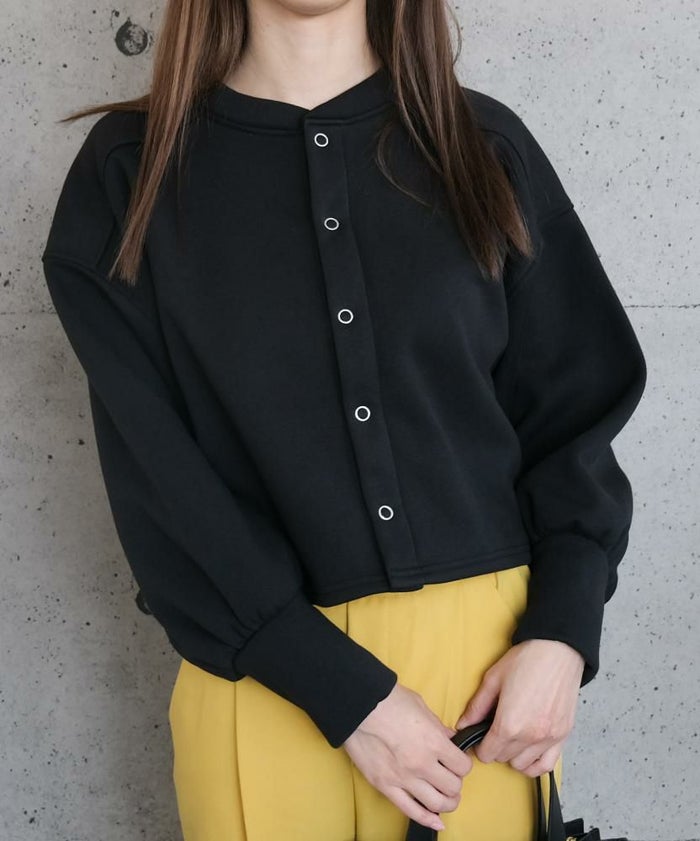 • カジュアルにもきれいめにも着られる!スナップボタンショート丈裏起毛トップス