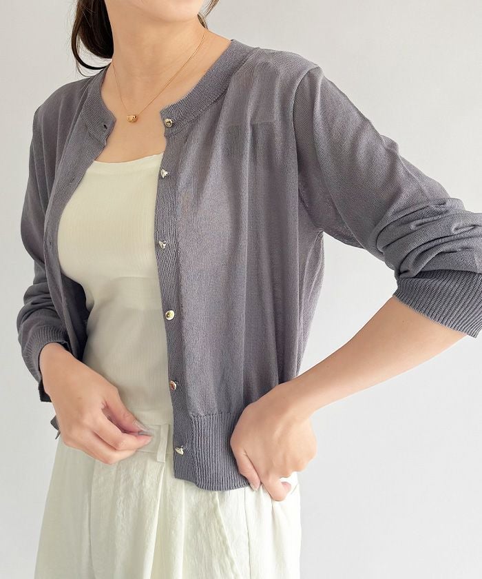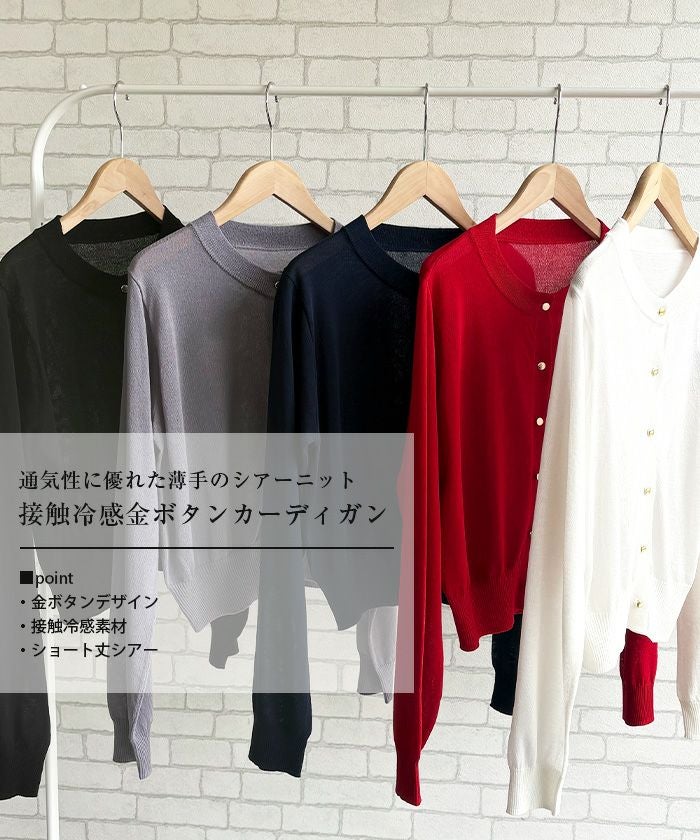 接触冷感金ボタンカーディガン レディース 春 夏 M 半袖 ≪ゆうメール便配送20・代引不可≫ | アクアガレージ aquagarage