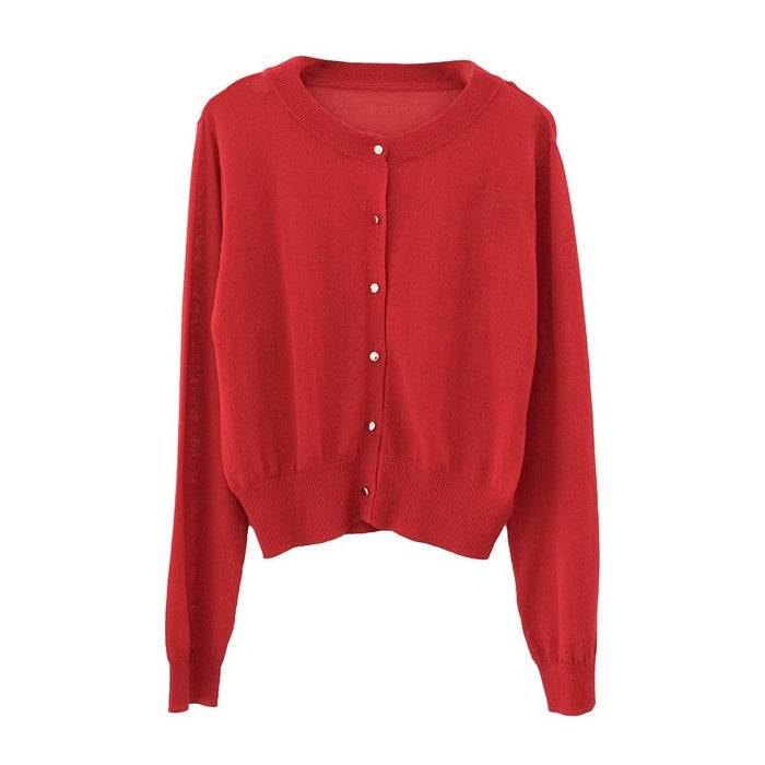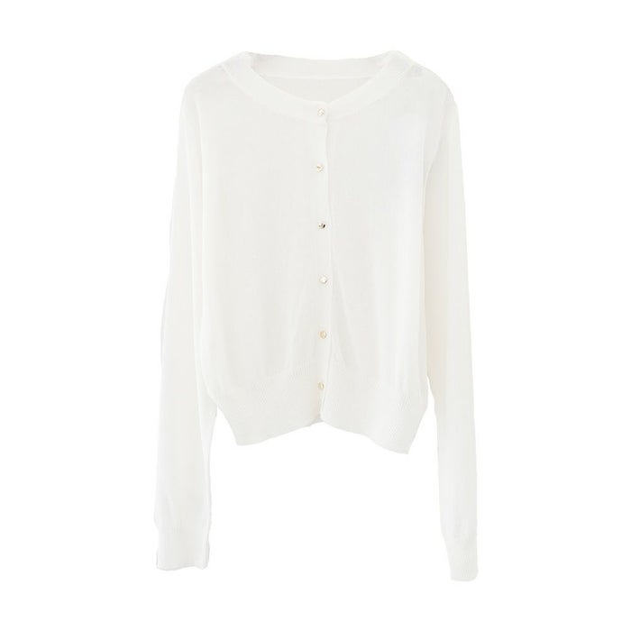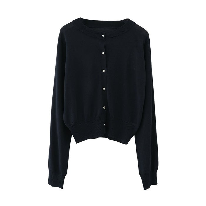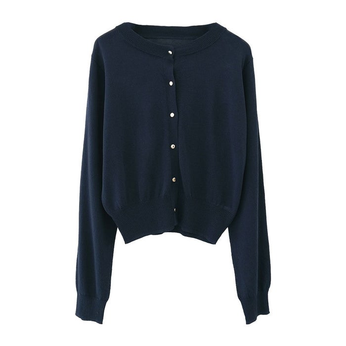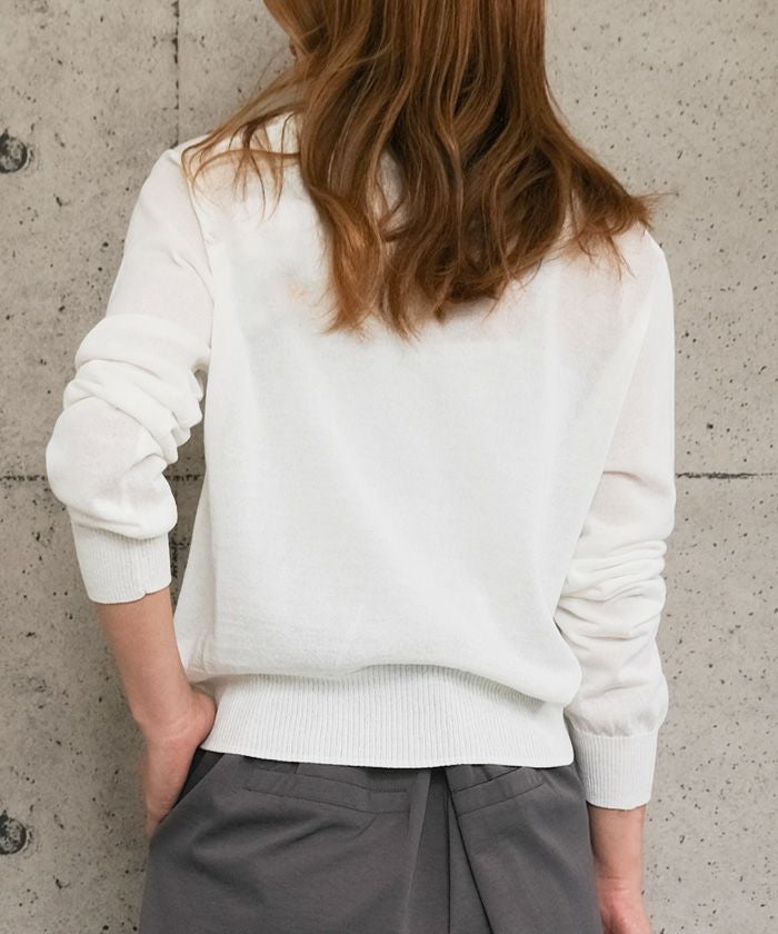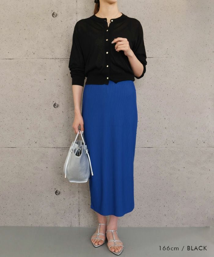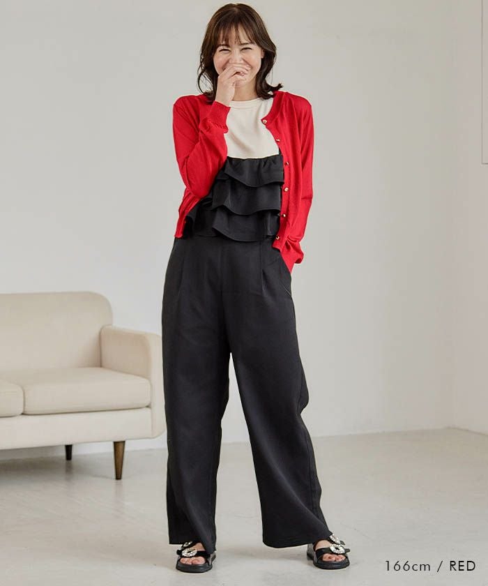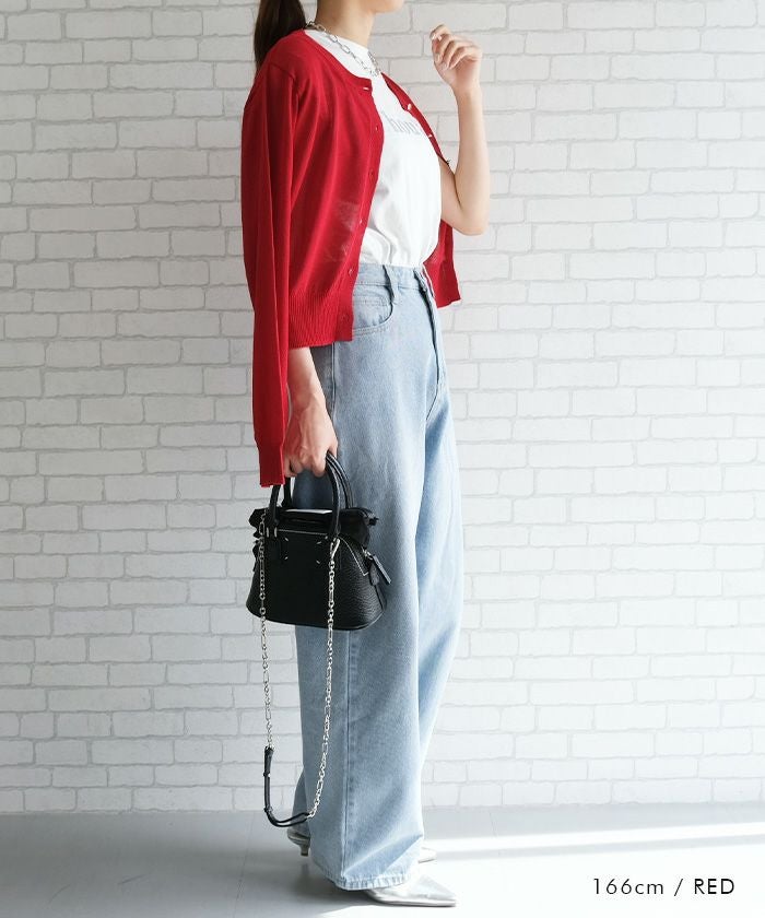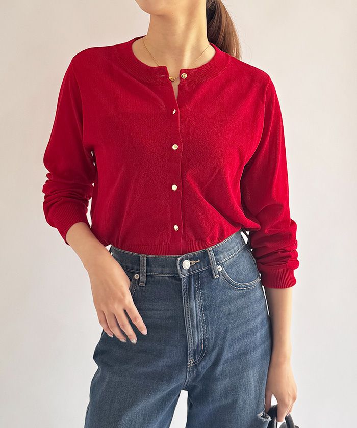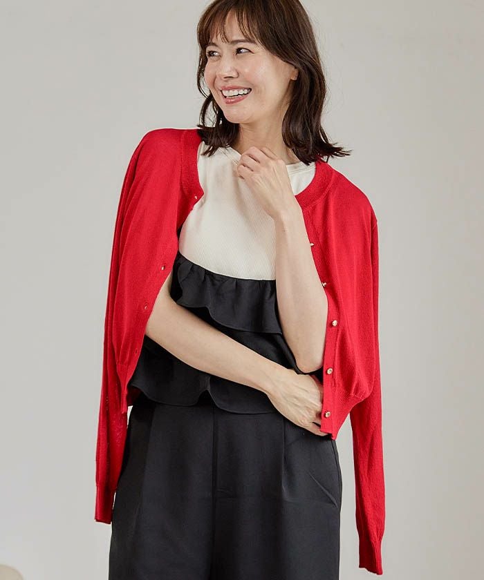 インナーにキャミソールやタンクトップを合わせ、カーディガンのボタンを留めるとコンパクトで上品な印象に。