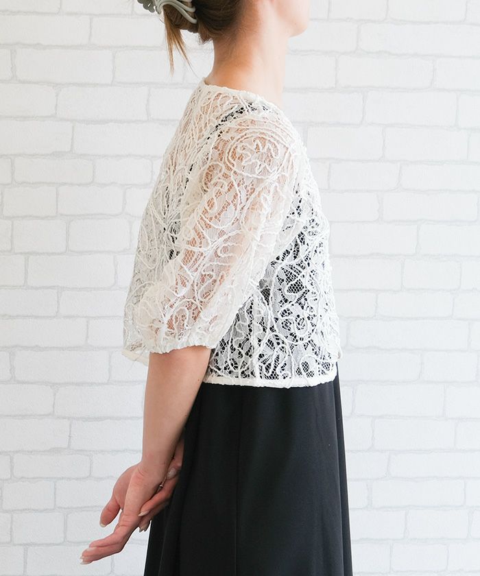 繊細なコードレースを使用し、女性らしい華やかさをプラスしています。