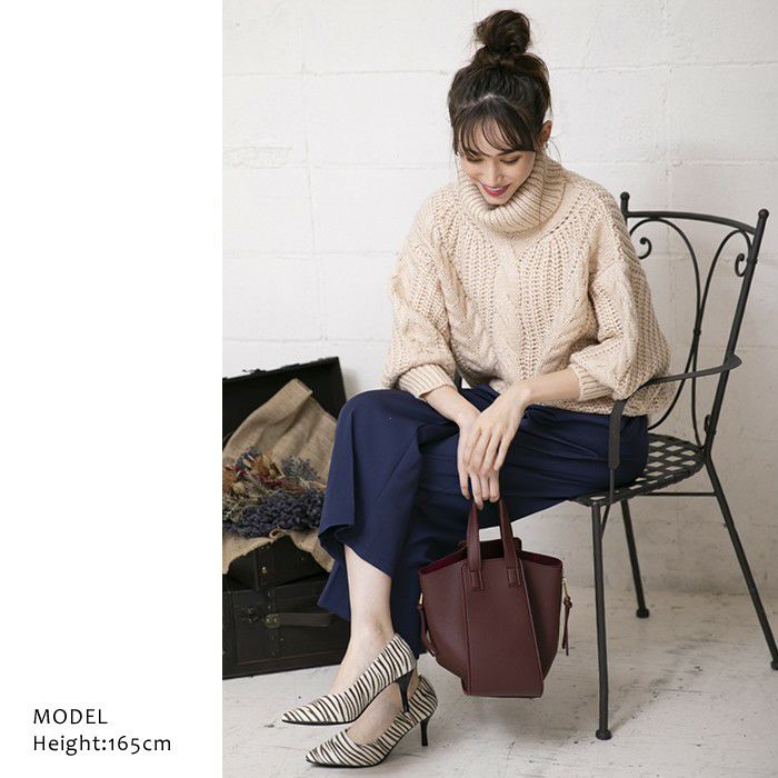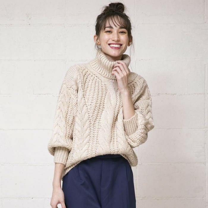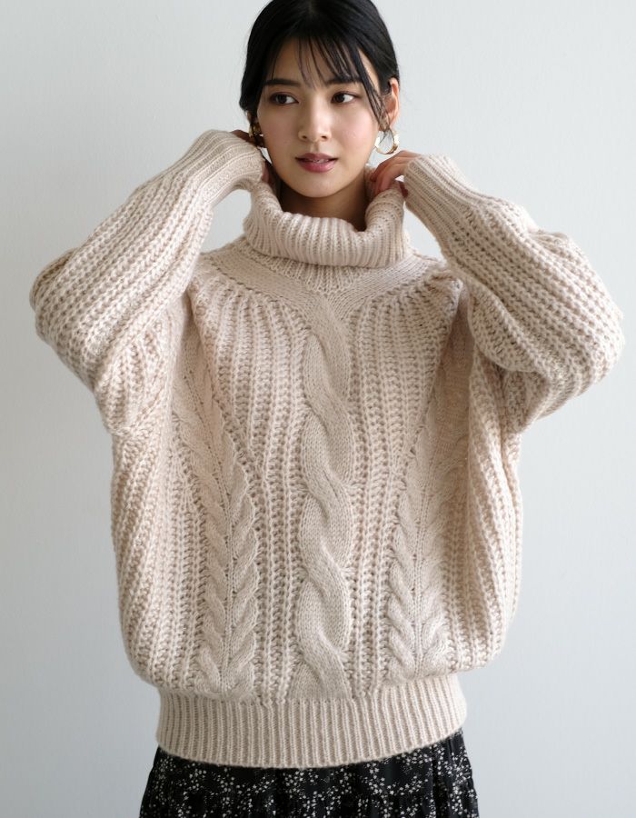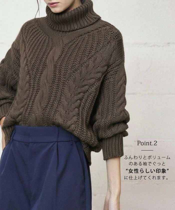 ケーブル編みオフタートルニット レディース 秋 冬 大きいサイズ 長袖 | アクアガレージ aquagarage