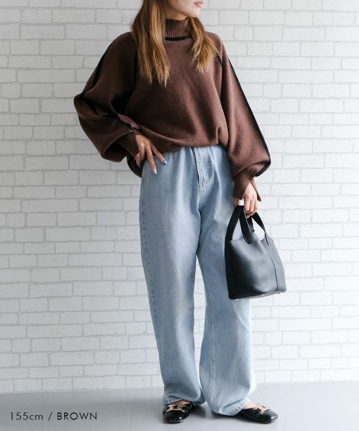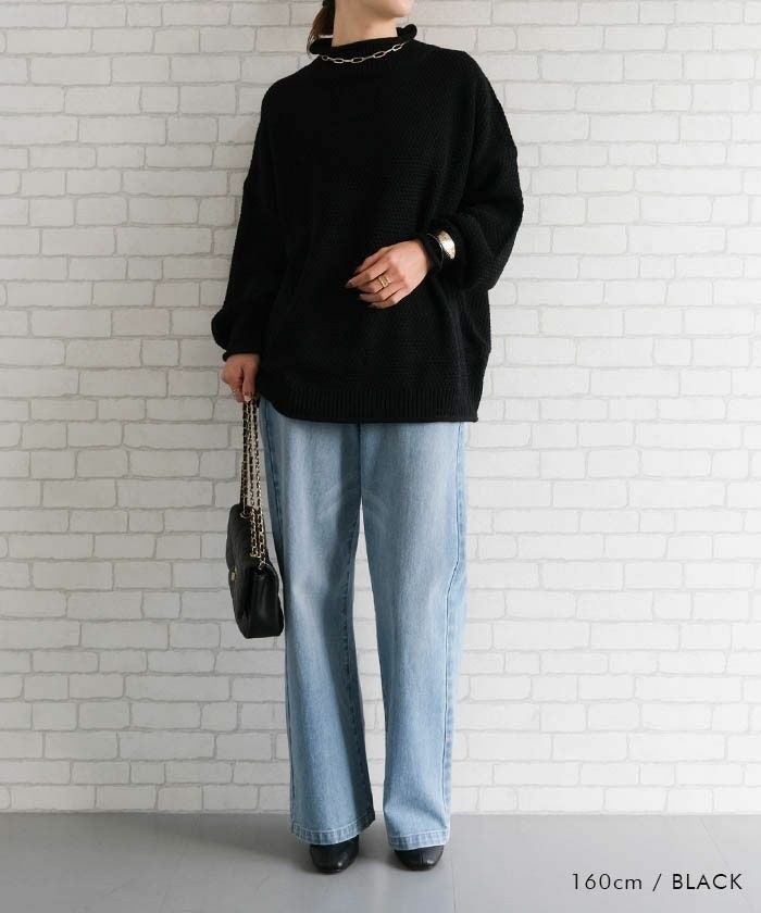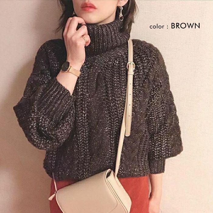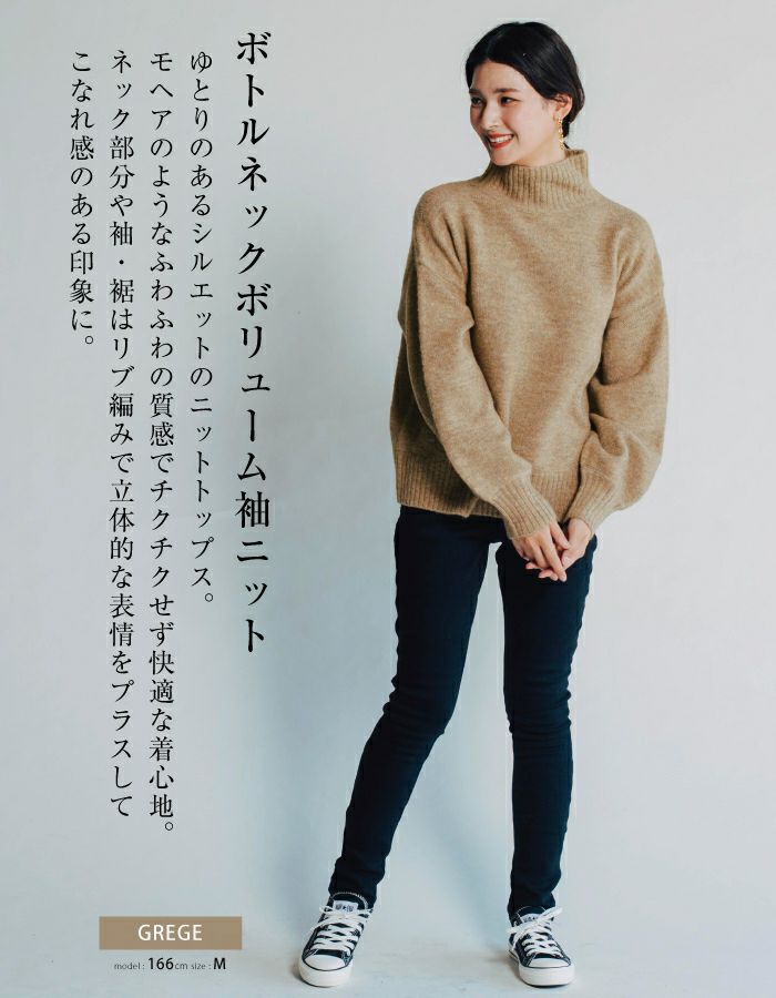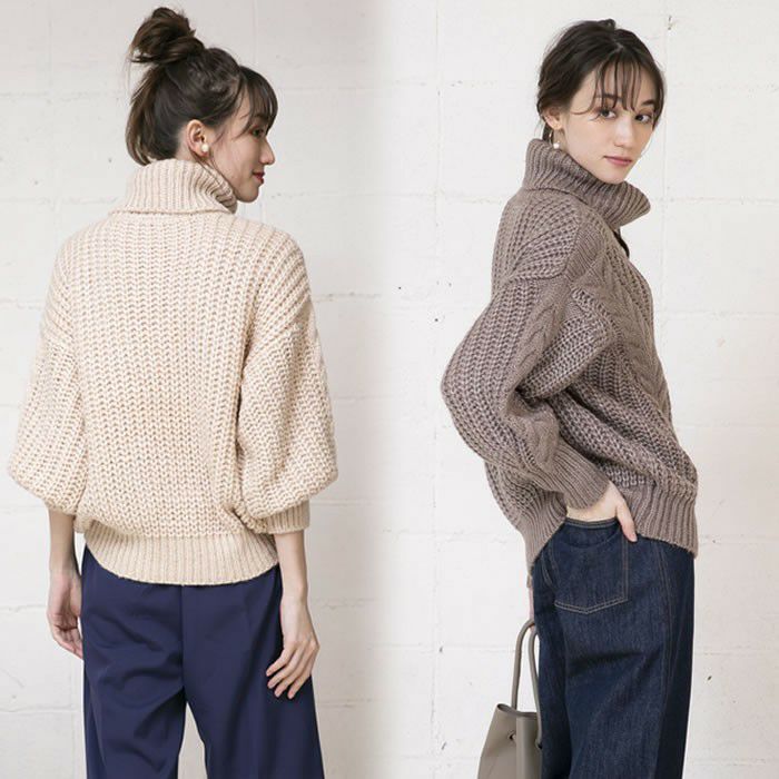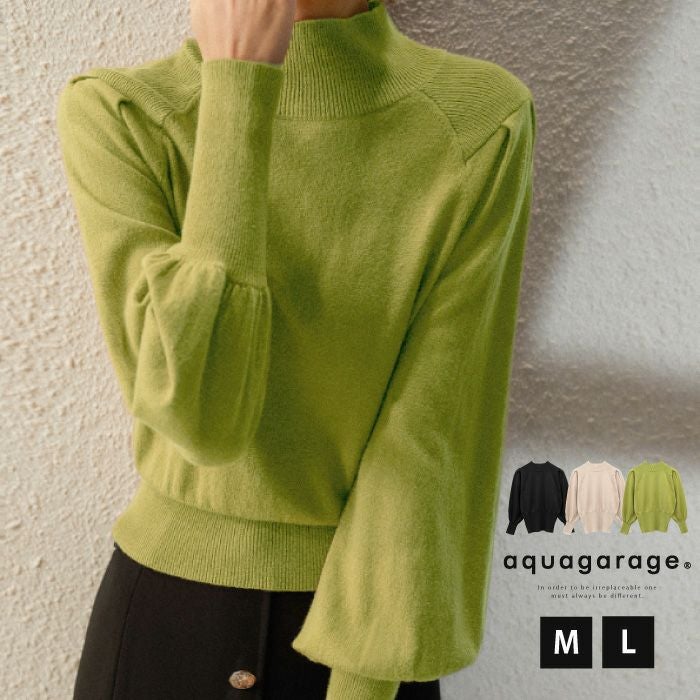 送料無料 ボトルネックボリューム袖ニット レディース 秋 冬 S M L 長袖 | アクアガレージ aquagarage