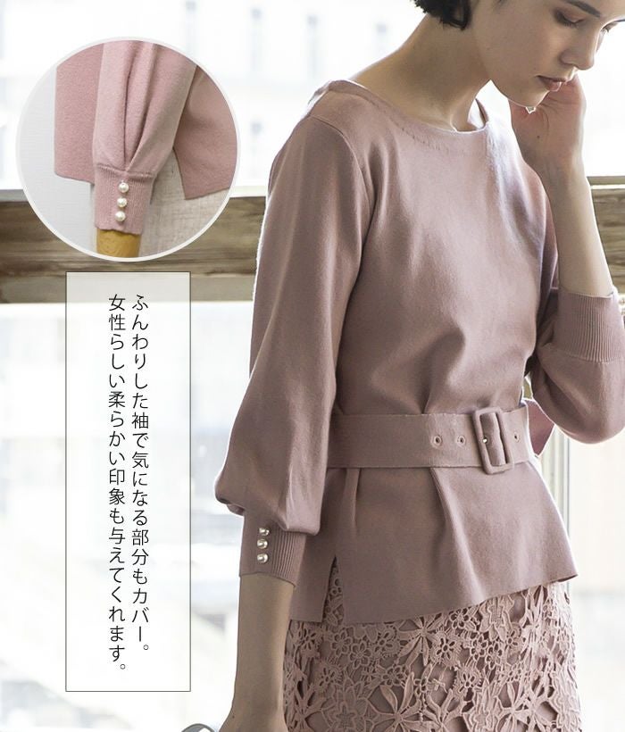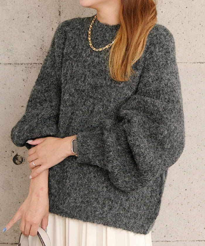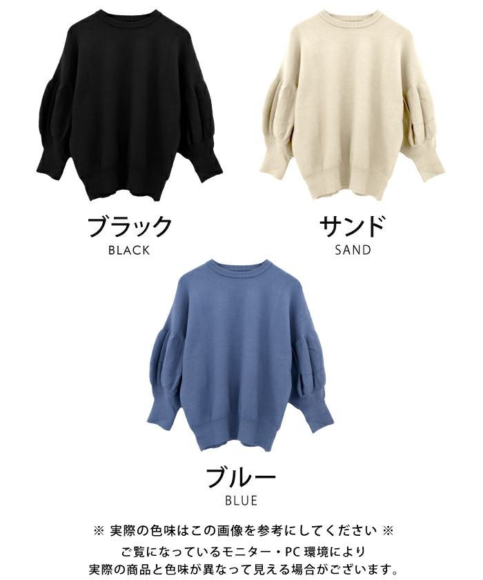 送料無料 袖バルーンニットトップス レディース 春 秋 冬 長袖 M L | アクアガレージ aquagarage